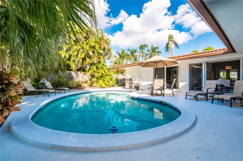 Come see this light & bright waterfront home (ocean access w/ 4 fixed bridges). Engineered Floors greet you to an open & spacious home. Impact windows & sliders open up to large pool deck & a heated swimming pool which is strategically landscaped to create privacy but still retains beautiful waterfront views The home also has a renovated kitchen w/quartz counters, SS appliances as well as renovated baths & large closets. The tile roof replaced in 2015, AC replaced in 2013, ductwork replaced & insulation added in 2019. The 45 ft dock features an 11,000 lb boat lift. The home also has a circular paved driveway & zeroscaped yard (no grass) for easy maintenance. Easy access to Pinecrest School, as well as Commercial Blvd, 62nd St & I-95. (all information believed accurate but not warranted)