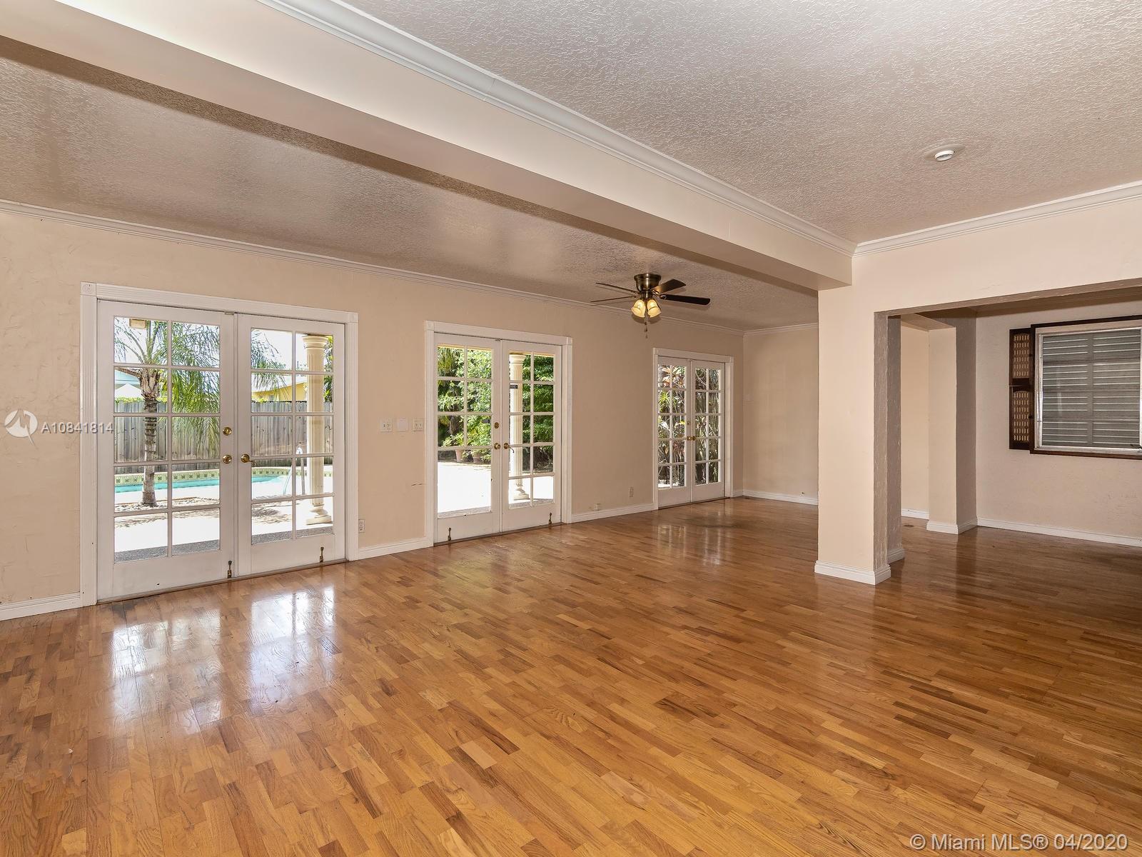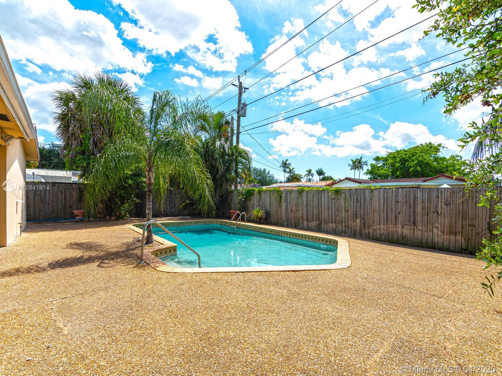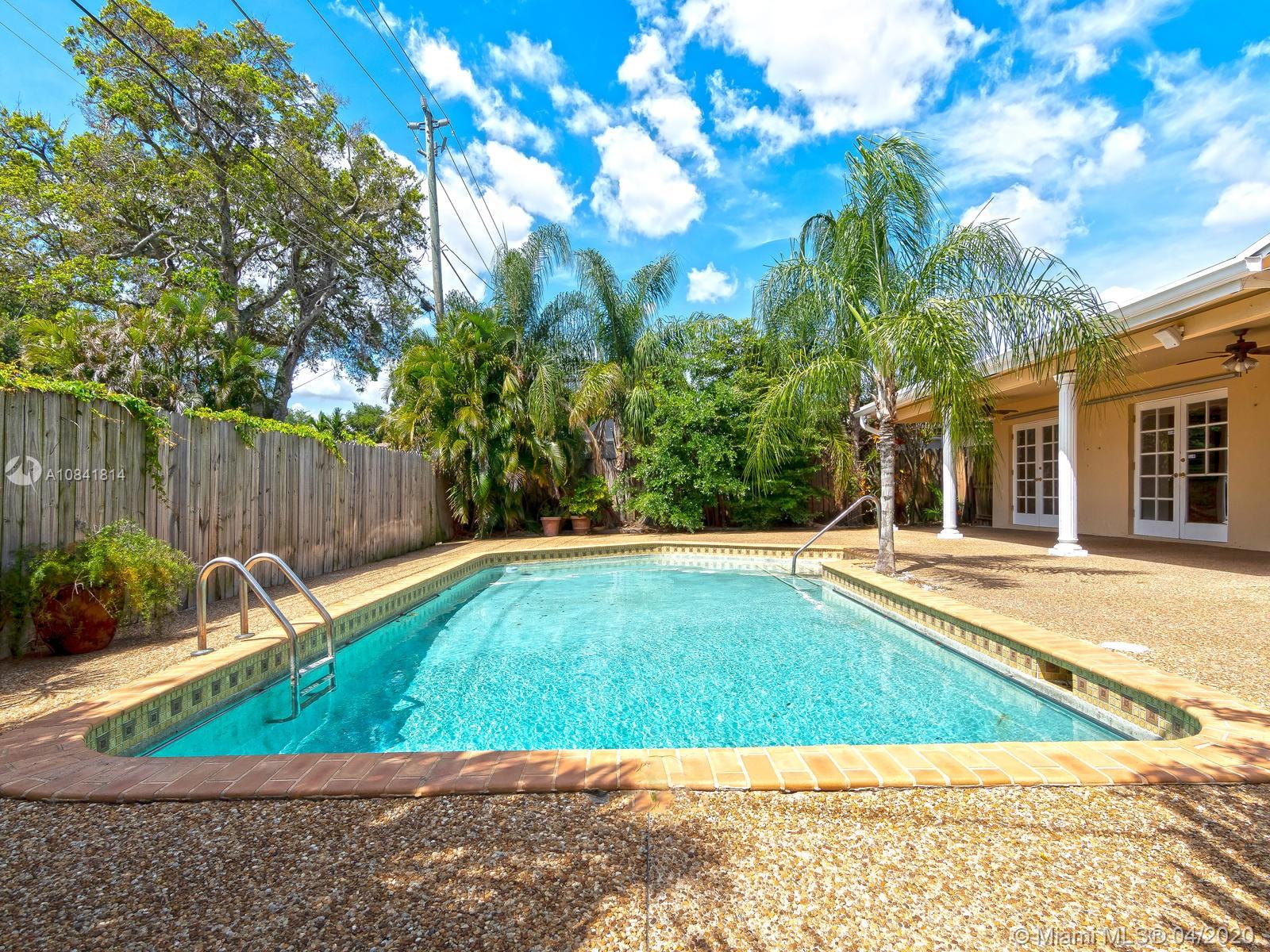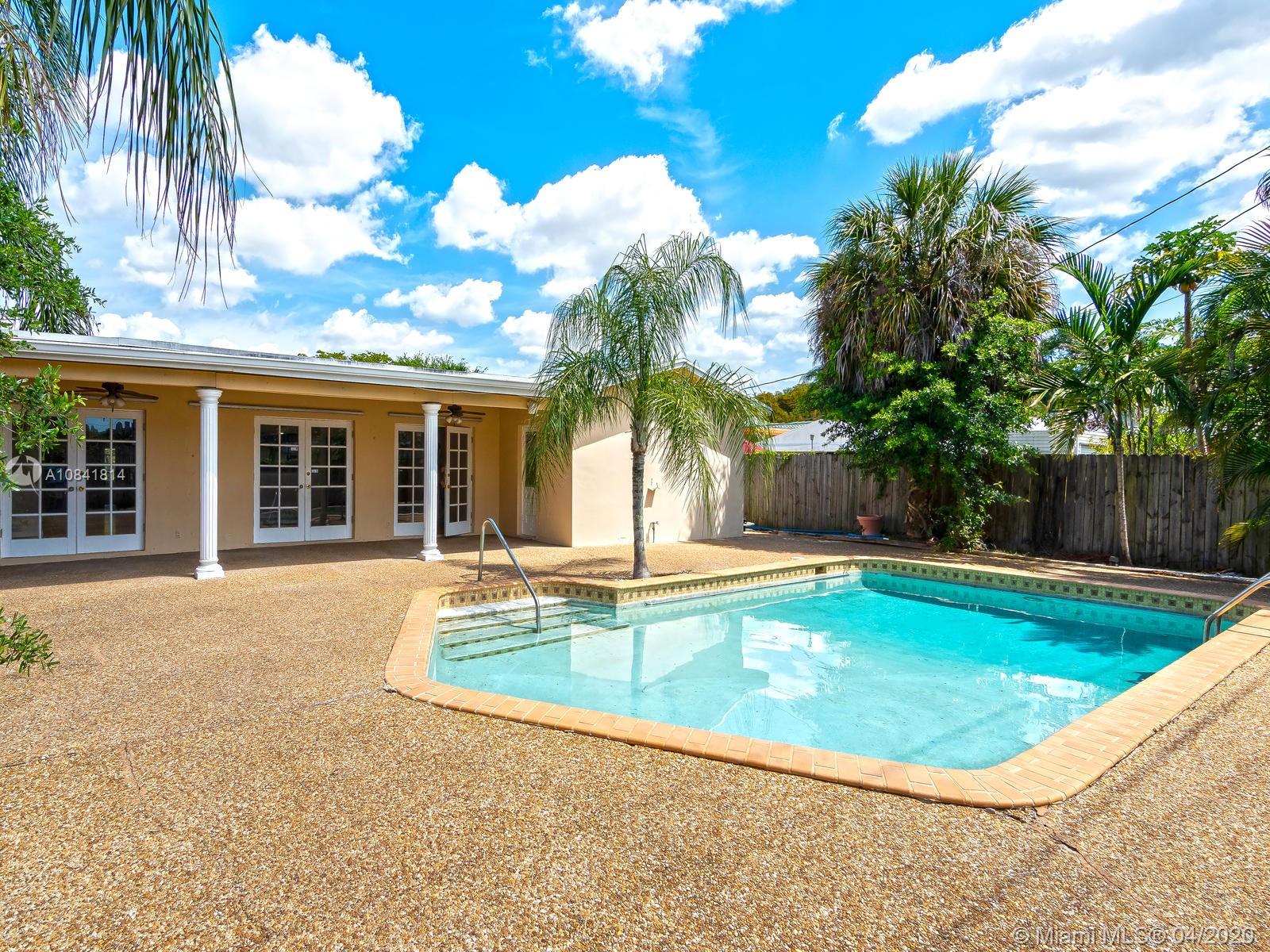Large & open floor plan with rooms so great one expects to see only in much larger homes. You will fall in love with this this charming 4 bedroom 2 bath home. Special features include hardwood floors throughout, updated kitchen with granite countertenors, stainless steel appliances & wood cabinets, newer bathrooms with modern mosaic tile patterns. Newly updated sprinkler system will ensure your lush tropical landscaping flourishes. Large pool and deck area ideal for entertaining. Stunning curb appeal by way of the charming columns & brick facade. Centrally located within the Hollywood Hills Subdivision (no HOA), walking distance to TY Park, less than a mile to I95, 7 min drive to the beach & 10 to FLL Airport. Corona ready and available for your private viewing, just call listing agent.