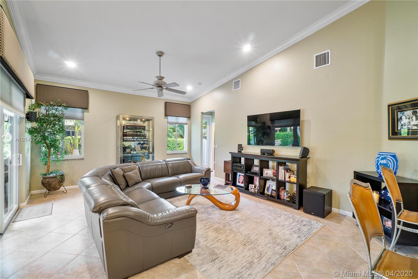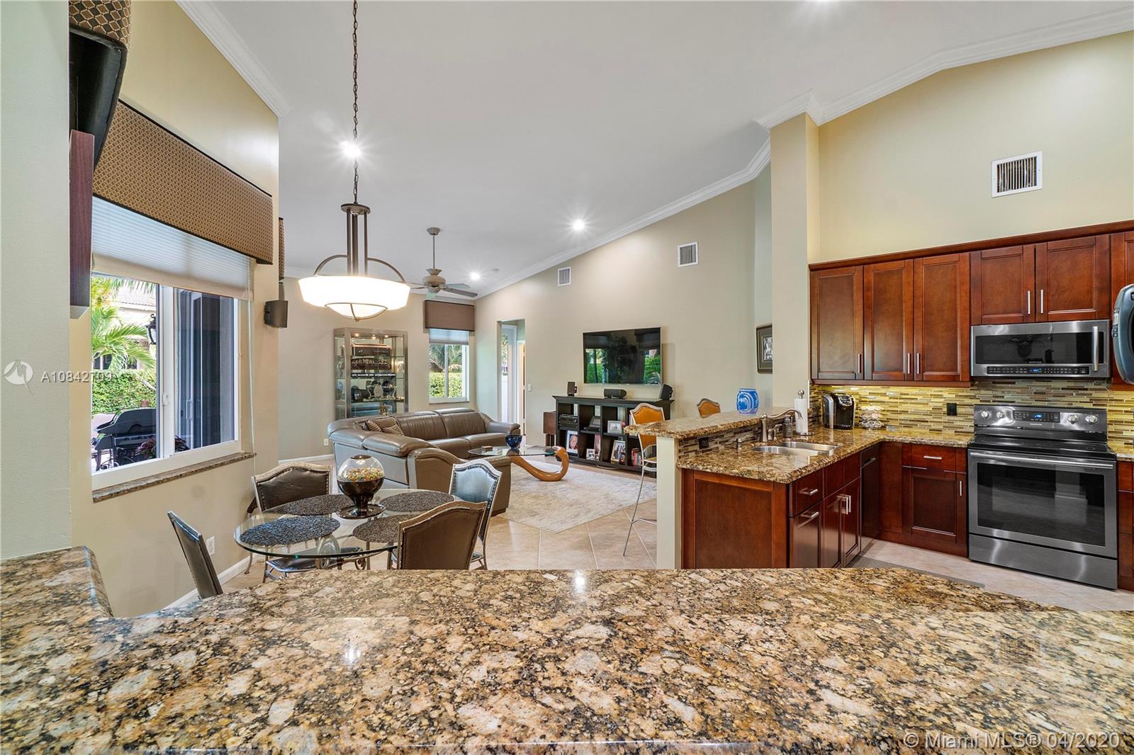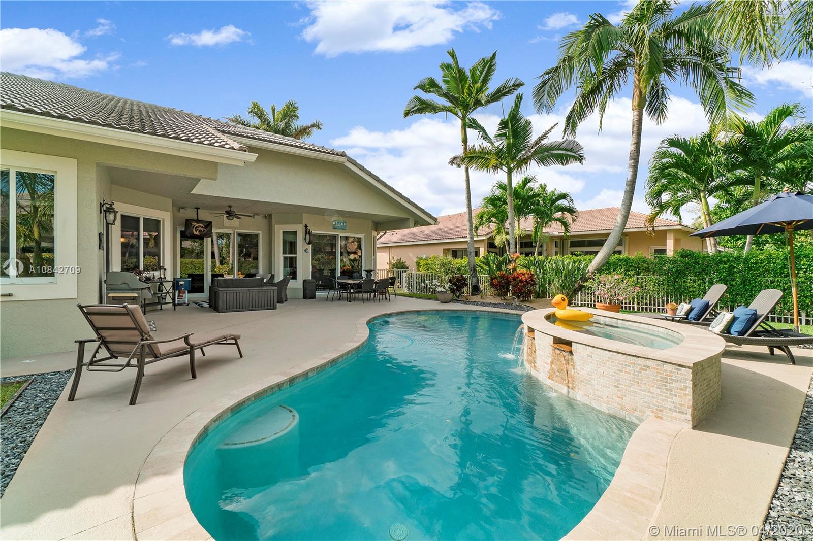 This is the ONE! Impeccably maintained Kensington Chelsea Home that sparkles like a rare Gem. Gorgeous Home from every angle. Tasteful upgrades included : Gourmet Kitchen w/ Granite Counters, Stainless Steel Appliances, Custom Cabinets, New Hurricane Garage Doors, Crown Molding, Knockdown Ceilings, Newer AC and Water Heater. Inside Laundry Room w/ high end washer and dryer. Triple Split Floor plan w/ private bathroom can be used as the perfect mother in law quarters. Large den is perfect for home office. All 3 bathrooms have WOW Factor improvements. Step outside to your own Private Oasis w/Custom Pool,