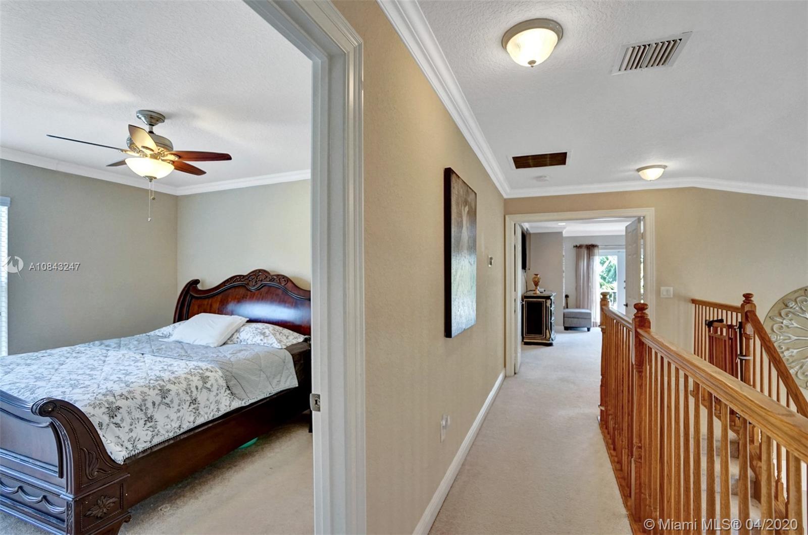 BACK ON THE MARKET Gorgeous 2 story home w/Premium lakefront lot in highly sought after Sunset Falls Community. It features breathtaking panoramic Lakefront views over a mile long. Open floor plan encompasses 5 spacious bedrooms with 3 full updated bathrooms & kitchen. Bedroom & full bathroom downstairs. The vaulted ceilings add to the expansive elegant feel. Balcony off the Master Bdrm great to enjoy entrancing sunsets and sunrises unique to this premium oversize lot. Patio ideal for entertainment or evening dinning al fresco. This home has been meticulously cared for. High tech security system. Smart a/c thermostat. New a/c handler and a/c unit. Crown molding and baseboard throughout, Mirrors and wall décor Victorian style. Formal D.R. Chandelier & Refrigerator are NOT included in Sale.