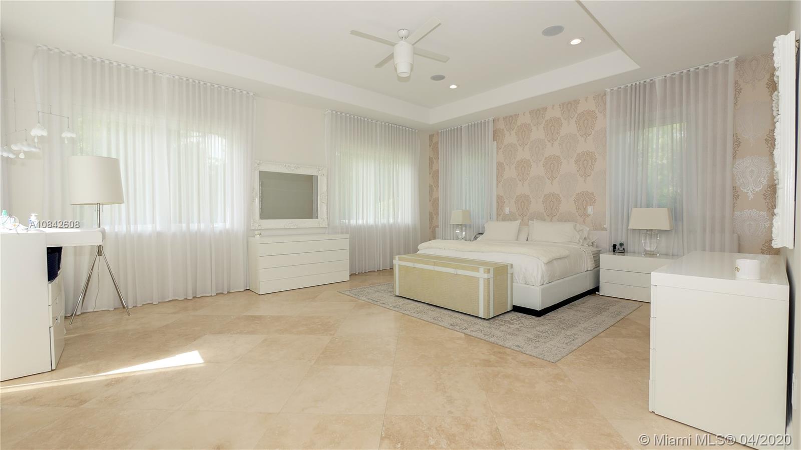 A Must See! Entertain family and friends in the spectacular corner builders acre estate residence in N. Pinecrest. Walk into stately foyer with 20ft ceilings and a half moon staircase. The 2 story Mediterranean design is accented by beautiful columns, floor to ceiling windows and travertine marble throughout. A whole house Audio and Lighting Lutron system and 16 camera security system. The first floor master bedroom with a private sitting room and wood burning chimney, an office/library/bedroom, plus a guest/maids room. The upstairs has 3 full bedrooms each with en suite bathrooms and a game/billiard room/theater room. Additional features include a private elevator, all impact windows a 70,000 kilowatts whole house generator, summer kitchen, heated spa and swimming pool.