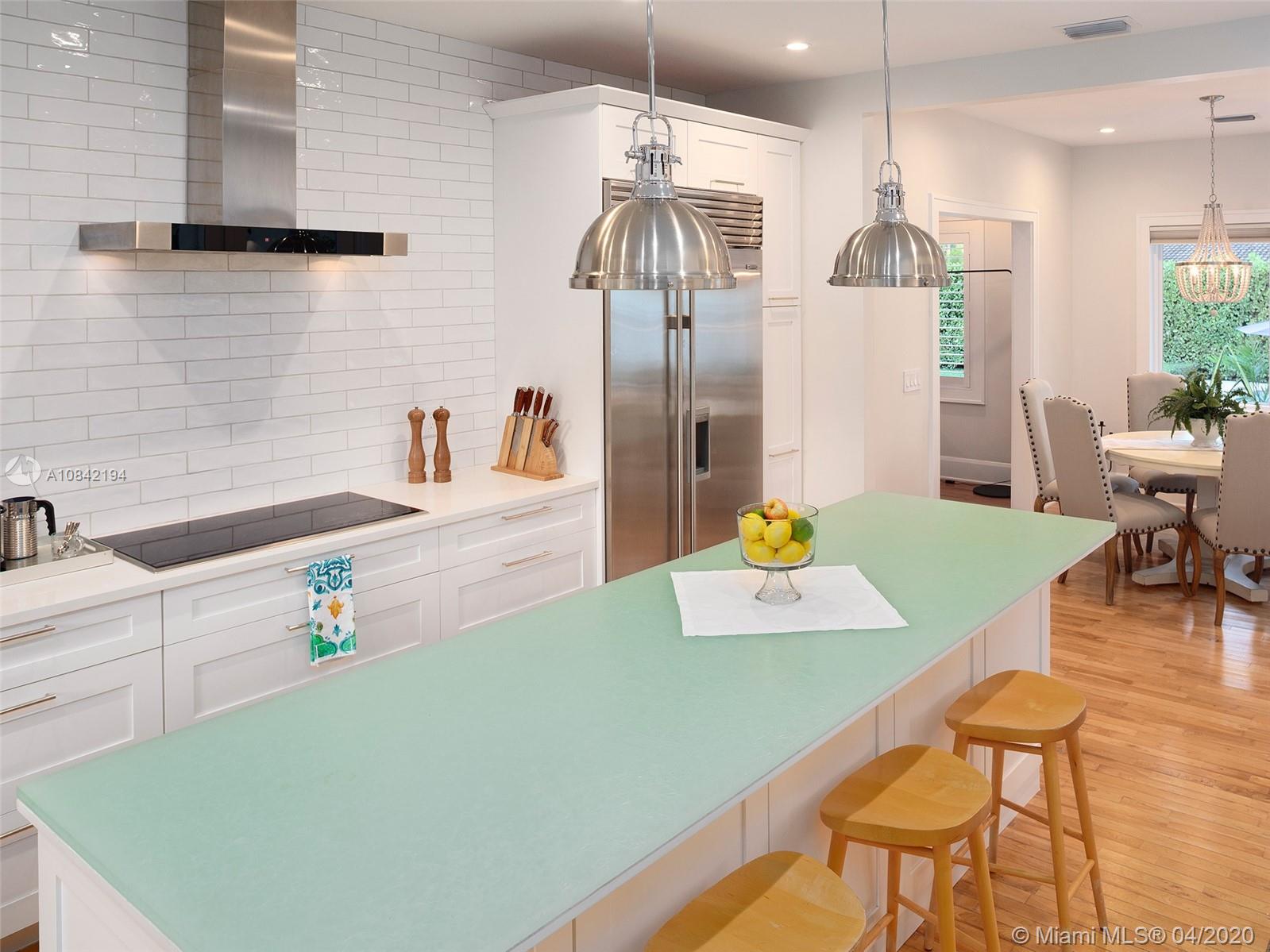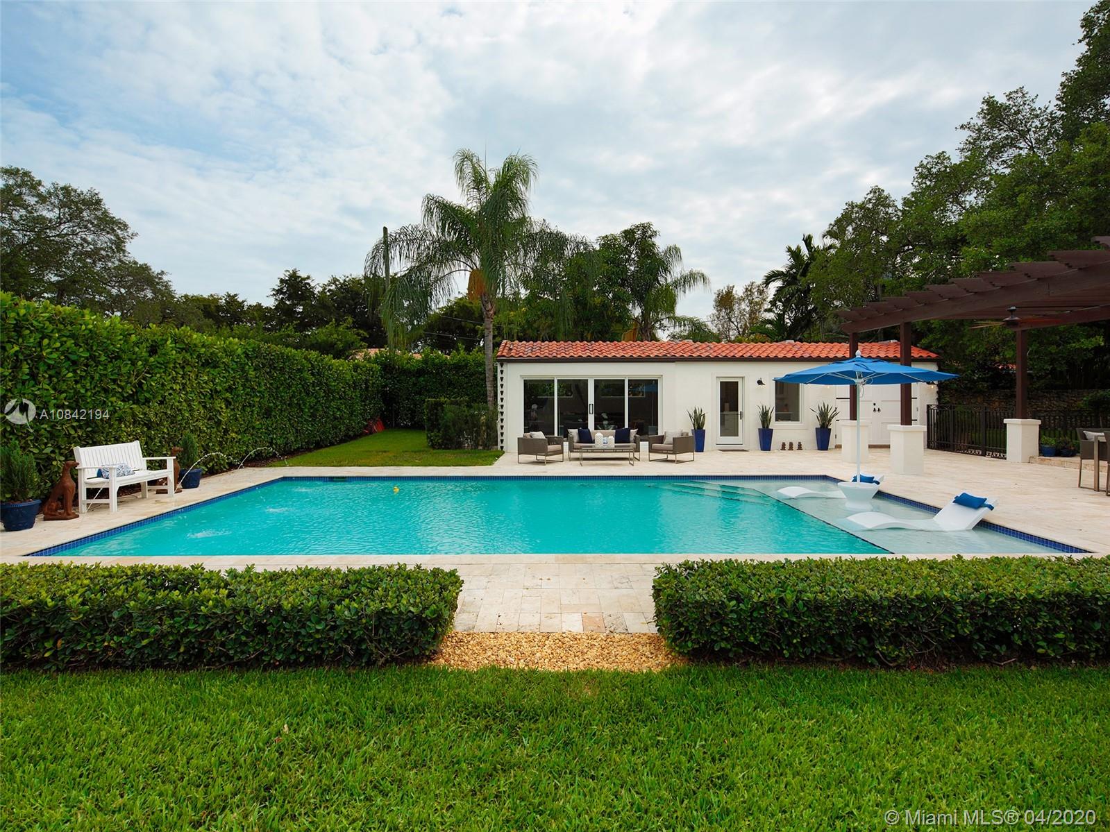 Renovated to perfection! Historic charm meets modern luxury in this completely restored 5/4 Golden Triangle estate. Truly unique find on huge walled/gated 18,548 sqft lot w/ heated pool, sweeping lawns, patios, a magnificent 70+ yr old specimen oak & separate poolside casita w/ kitchen. Sunny garden vistas from all rooms including a lovely view of the historic Biltmore. Master BR w/ lg walk-in closet & spa-style bath. Lg kitchen w/ high-end appliances, prep island topped w/ exquisite German BioGlass & walk-in pantry. Addl rooms: dining, liv, library, den. Walk to Biltmore, mins to Doctors Hosp/UM, MIA. 4404 liv sf/arch. VIRTUAL TOURS! https://tinyurl.com/MAIN-HOUSE & https://tinyurl.com/908-CASITA
