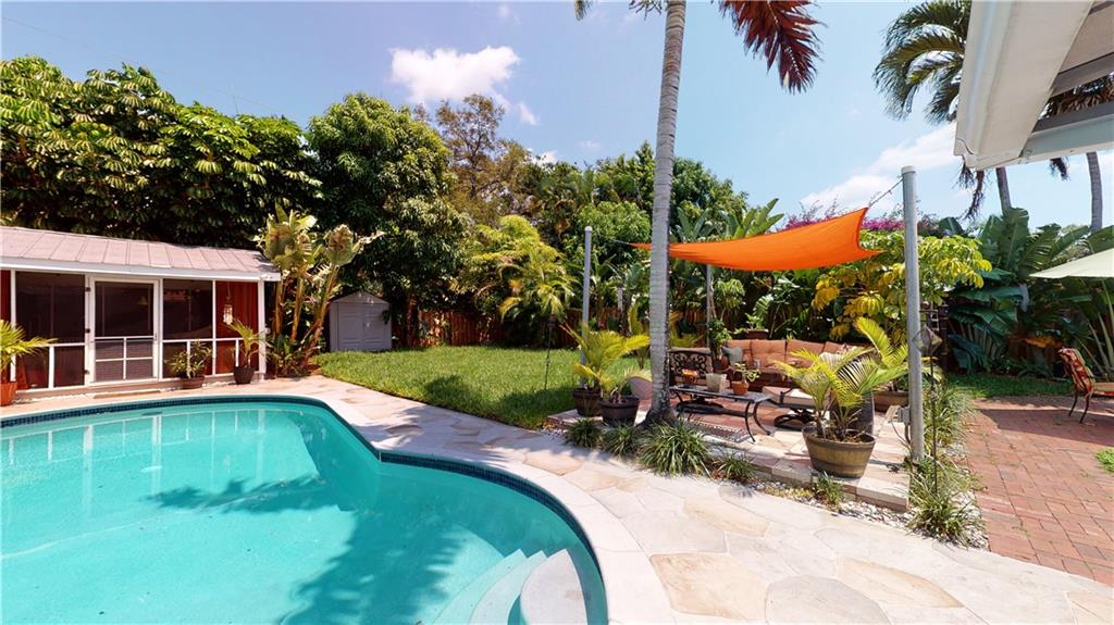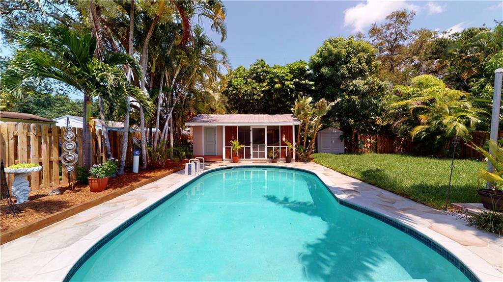 This beautiful three bedroom one bath, with screened in second structure (man cave/she shed), AND gorgeous pool home ... has it ALL ... and then some! Conveniently located in East Ft. Lauderdale between St. Rd 84 (Marina Mile & Davie Blvd East of I95) in a quiet neighborhood called River Oaks. Walking distance to parks, restaurants, and less than 2 miles from the beach. Featuring impeccable landscaping with matured trees, sprinkler system, security alarm, natural gas, updated electric, new PVC plumbing, new pool pump, new water heater, a/c unit less than 5 yrs old, large yard, laundry room, exterior shed, garden, and lots of room for entertaining your family and friends! Both the kitchen and bathroom have been tastefully renovated as well. Welcome to your own piece of paradise!!!