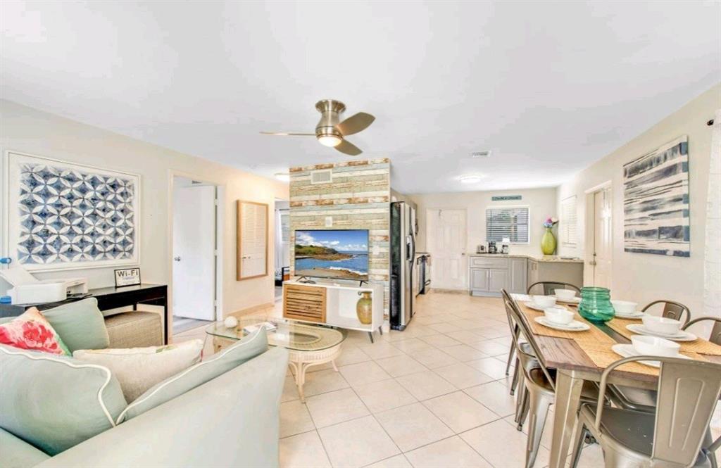 This is a very FLEXIBLE home with an open concept floor plan. In addition to the 2 bedrooms, there is a separate room with its own private entrance that can be used as a 3rd bedroom or an office. The home was updated in 2018 with a new roof (2017), a new modern and open kitchen and new laminated flooring in the bedrooms. The back yard is fully fenced and private, providing a great space for families, pets, and entertainment; even room for a pool if desired. The lot is a double lot and it has been separated and it is currently being rented for boat storage (extra $$$).