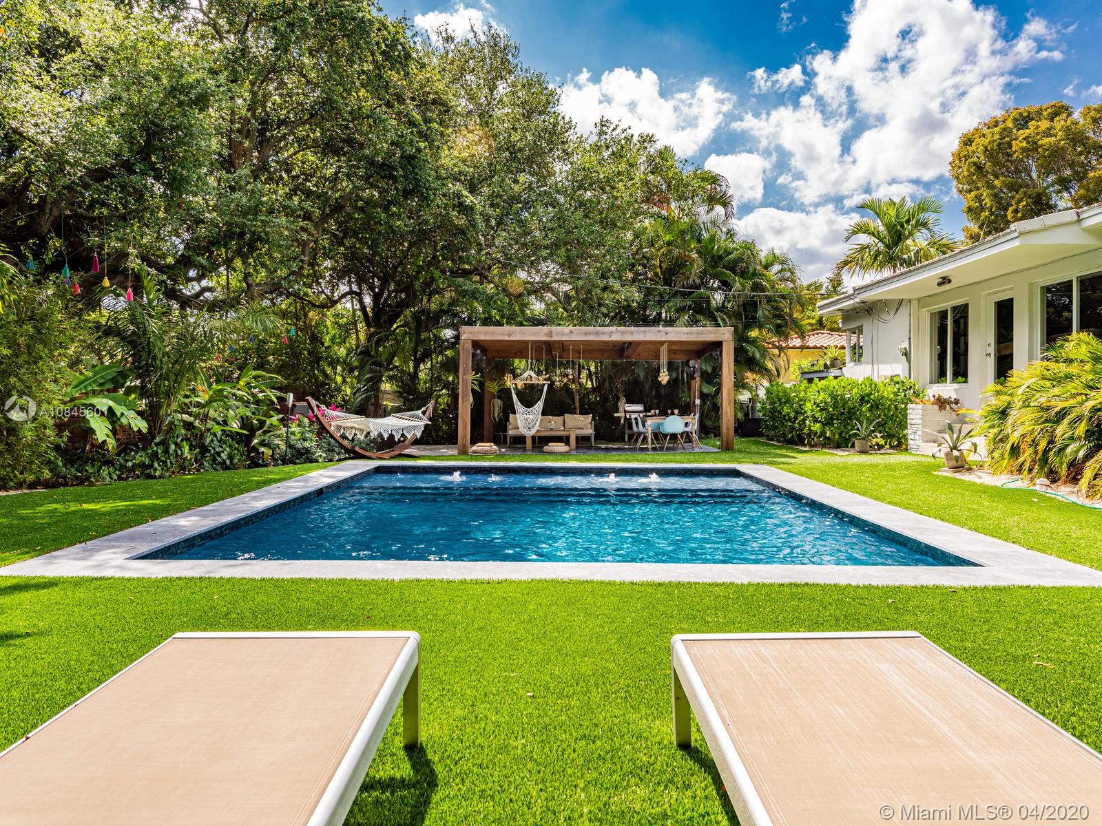 Welcome to Paradise Palms! Luxe updated mid-century corner lot open flow home with spectacular glistening salt water pool, perfect pergola, and sensuous spa, all under majestic 100-year-old mature oak trees. Discover paradise in this secluded lush private tropical retreat, with warm, sophisticated living, dining and custom colossal gourmet eat-in kitchen. Totally re-designed for the ultimate indoor-outdoor enjoyment, plus private split bedroom plan, including spa-like master suite retreat and many updates: roof, impact windows-doors, German ash planked floors, designer closets, AC, septic, sprinklers, 24 FT X 20 FT custom pool with leisure beach, joyous jacuzzi, lush landscaping, lighting and horizontal double-clad wood fence. Once you come discover paradise, you may never want to leave!