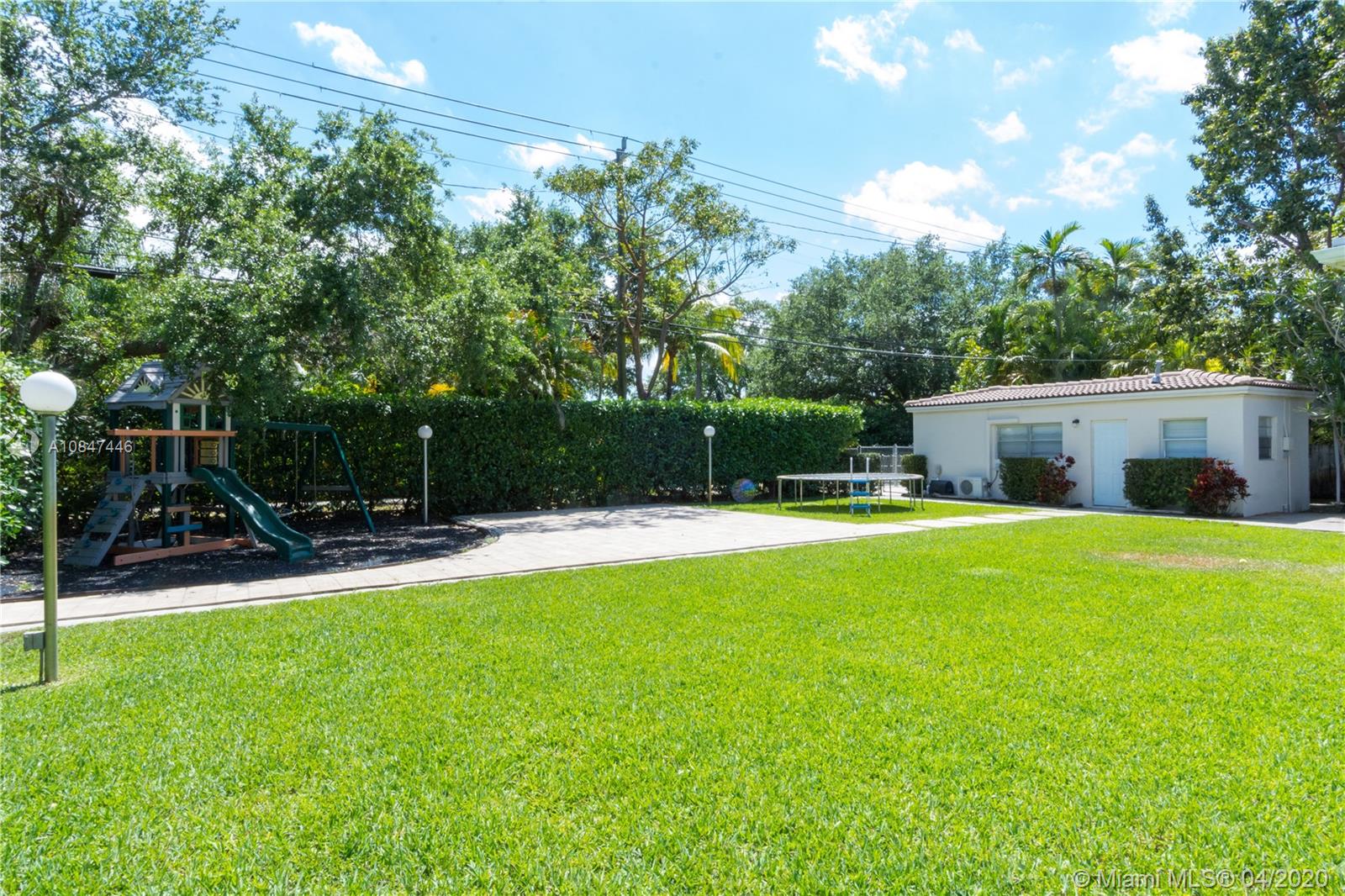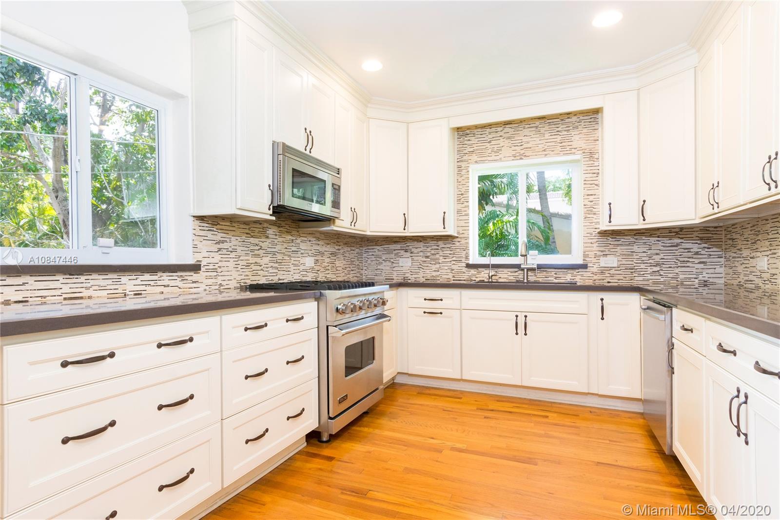 3 Bed 3 Bath home with detached renovated garage. Green view all around the house. Quiet area. Oversized lote. HUGE yard with room for pool and expand your house. Custom kitchen with 40" all wood cabinetry. Quartz countertop. Italian sink. Bosch dishwasher, Viking gas range and microwave. Hurricane impact windows/doors. Quiet dead-end street. All the benefits of living in Miami Shores: family oriented neighborhood with an spectacular Community Center which includes Golf, best after school care, aquatic center, new restaurants. Walking distance to Publix, CVS, gyms, the new and fancy Citadel. Dinning set and breakfast area furniture not included