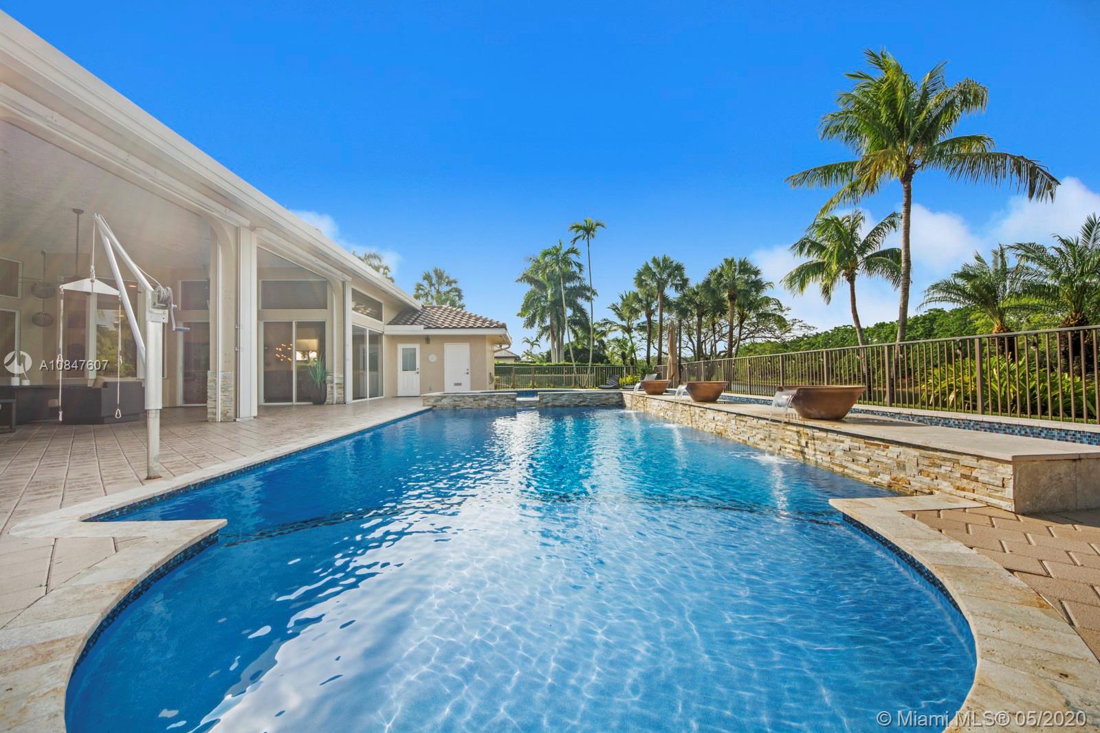 Bright and spacious newly remodeled four bedroom plus office home in the exclusive neighborhood of Windmill Lakes Estates, on a private corner lot with lake views. Entrance with circular driveway and lush landscape. Newly renovated kitchen with wood cabinets, new appliances and quartz counter tops, two sinks, beverage cooler, and walk-in pantry. Swimming pool and spa connected with Aqualink system. Master bedroom with large walk-in closet. Bathroom has separate sinks, tub and walk in shower. Large laundry room. Three A/C units, impact windows, new roof and over sized gutters, 13 foot ceilings and was recently painted on the outside. Wired for sound, with speakers throughout. House and landscape were designed with extra features to minimize regular maintenance.
