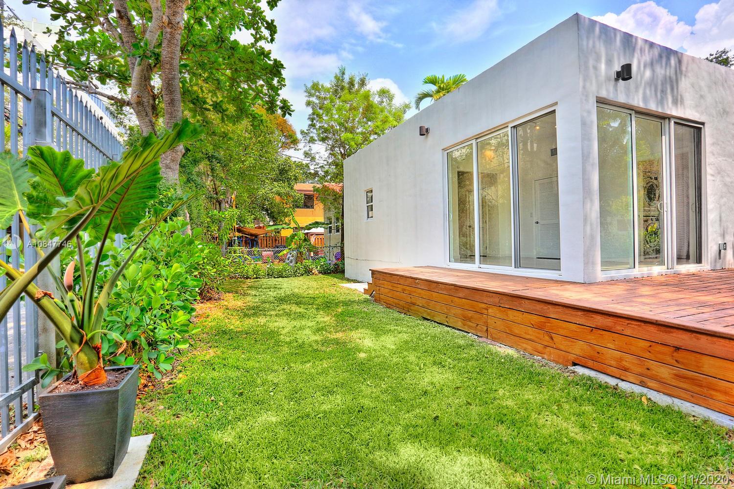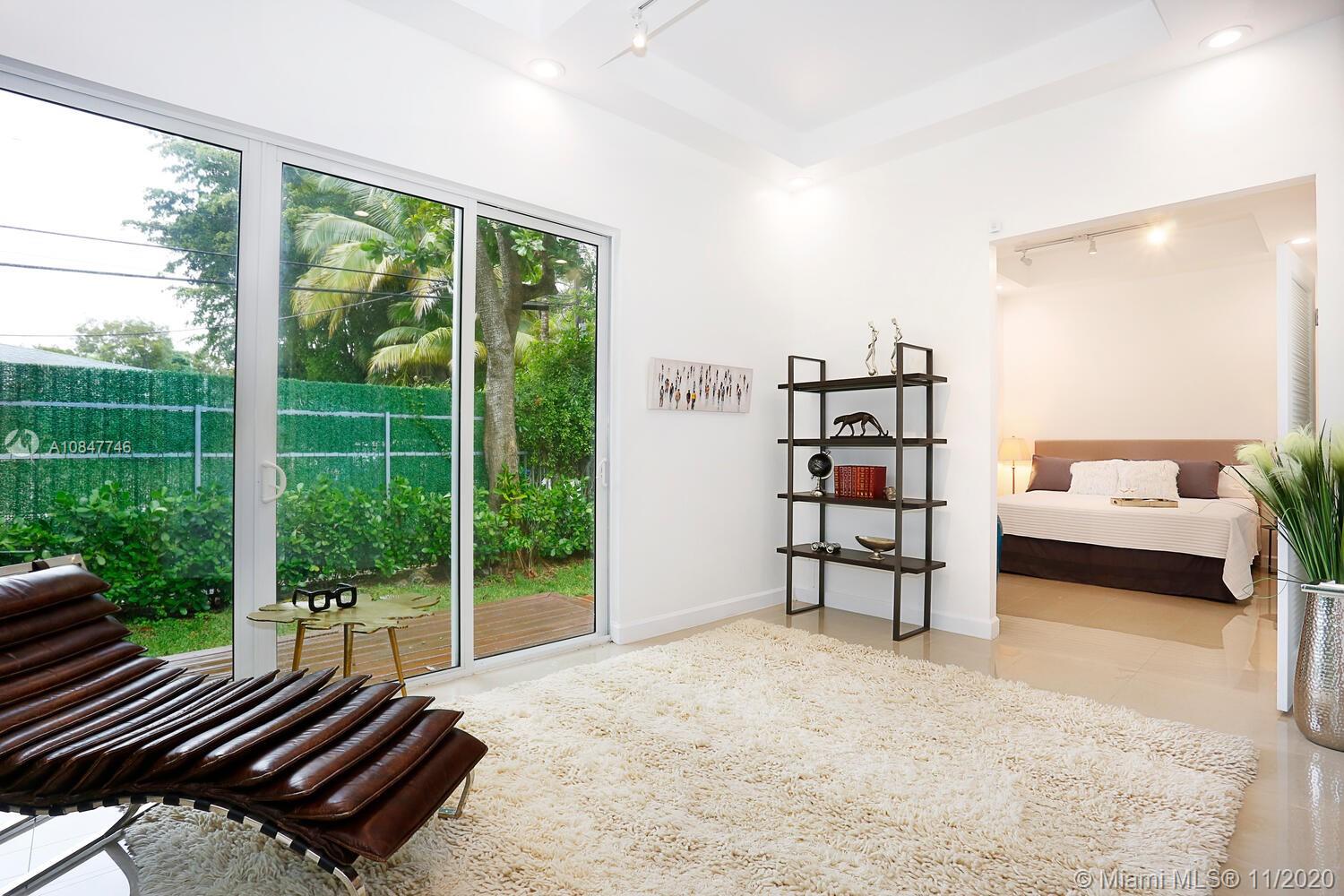Modern-style gated home on a tree-lined street in prime North Grove location. Just a short walk to bayfront parks & marinas and close to the Grove village center’s boutiques & cafes. Recent total renovation + major addition & structural remodel in 2013. Light-filled living spaces (formal living/dining + den) with vaulted exposed beamed ceilings & wood flooring. Stunning new kitchen with center island, white high-gloss cabinetry by Eucucina, stainless GE appliances & stone countertops. 4 BR’s (1 with unique sleeping loft). Expansive master suite featuring 14’ ceilings, porcelain tile flooring, separate office/sitting area, two custom walk-in closets and spa-like bath w/jacuzzi tub. 2013- new roof /electrical /plumbing & HVAC systems. Minutes to downtown, MIA, Key Biscayne & the Beaches.