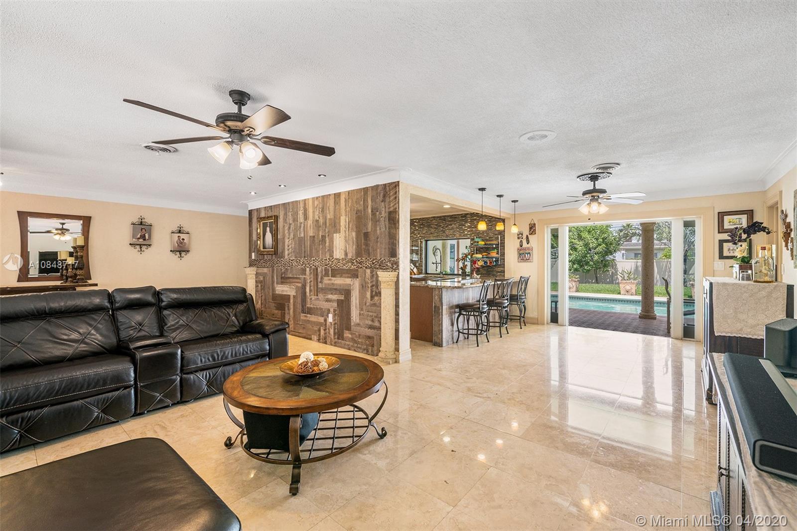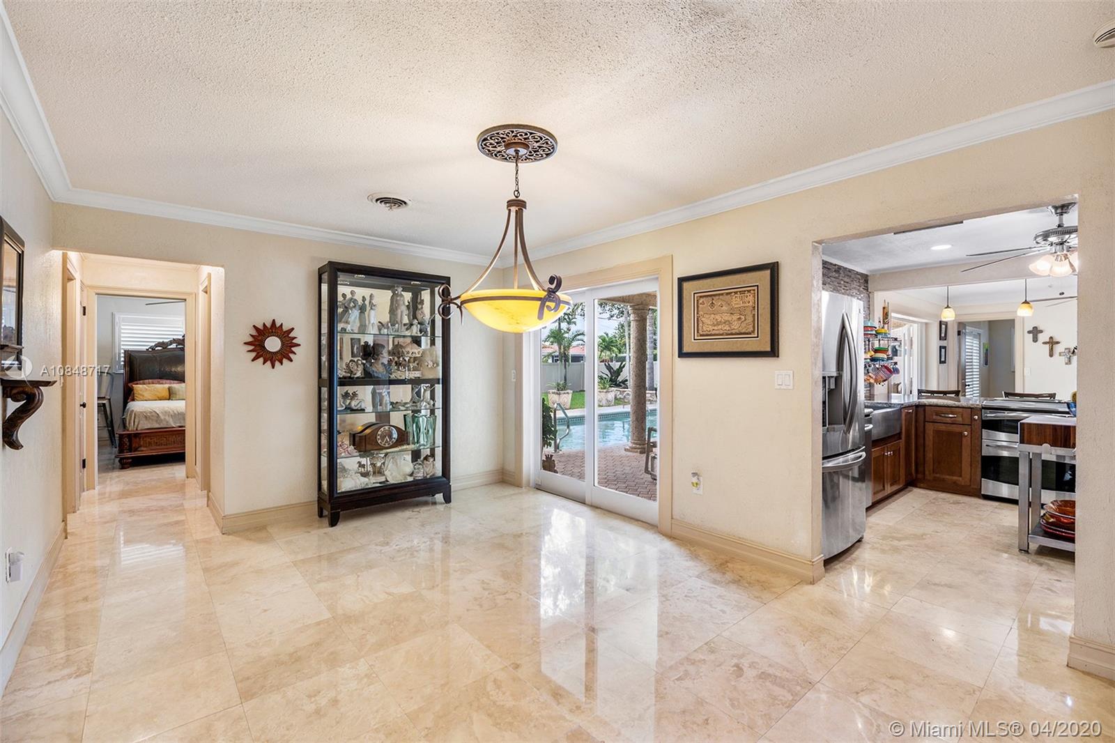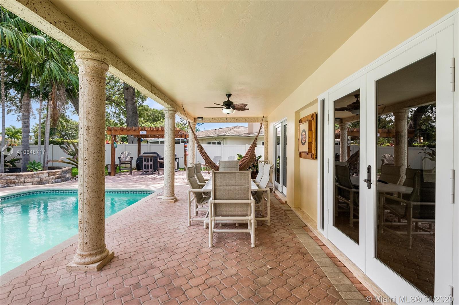 Elegant Hollywood Hills home! Abundance of natural light compliments the open floor plan and accentuates the beautiful Travertine flooring. Impact windows and doors throughout and shutters as well! Plumbing has been updated to PVC and the barrel tile roof is only around 10 years old. Pool resurfaced and retiled within the last 3 years. The oversized lot is equipped with a sprinkler system, landscape lighting, hurricane rated shed and is enclosed with a PVC fence. This house has an indoor laundry/utility/storage room and 2 car garage. AC was replaced in the last 3 years. Natural gas to the water heater and whole house generator. Spacious bedrooms all have walk in closets. Stunning master bathroom and cabana bath! Plantation shutters throughout. Tropical fruit trees including mango and more!