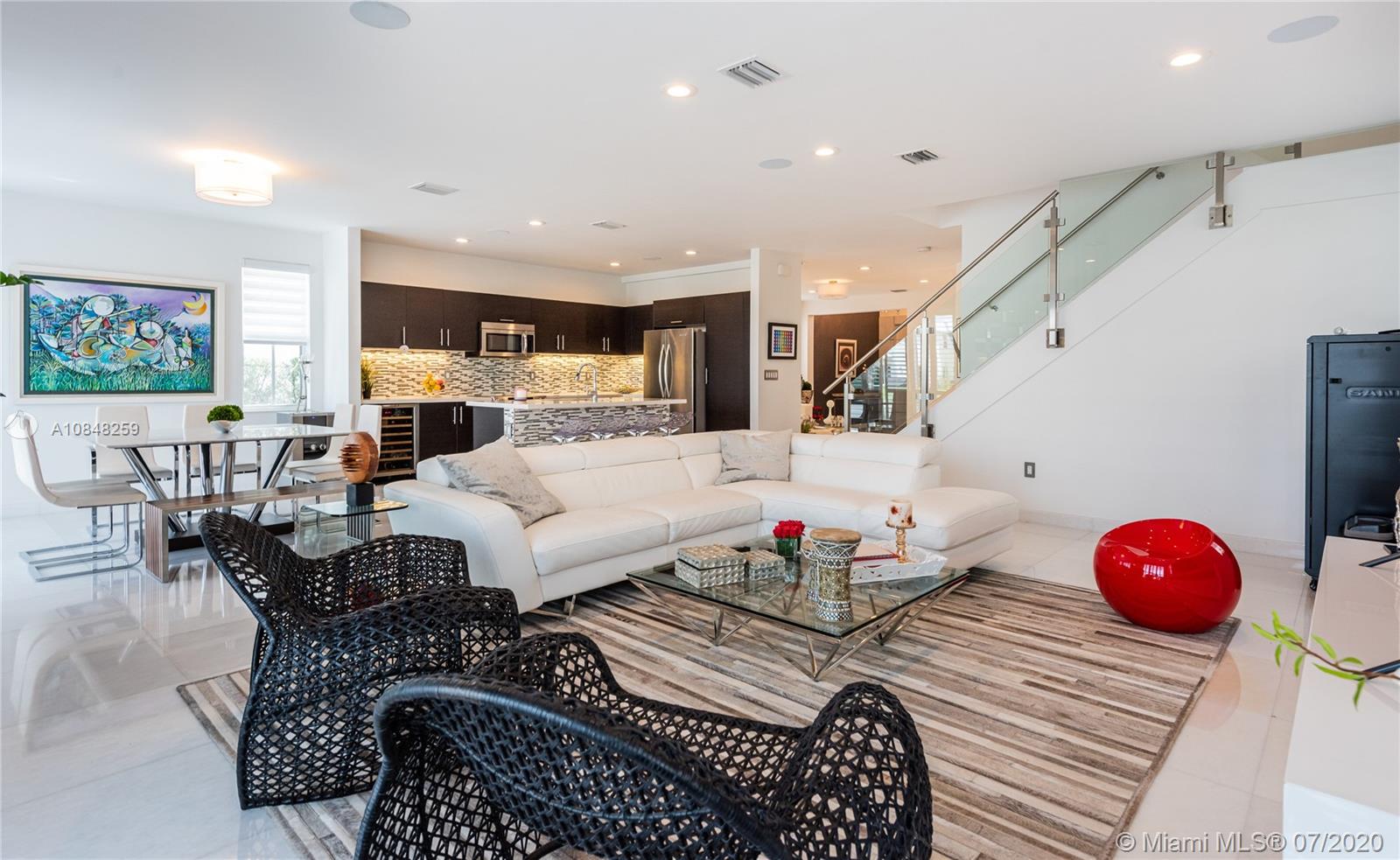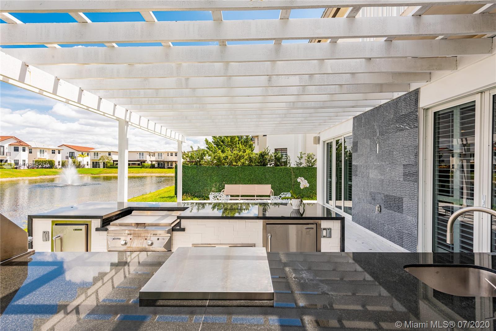 REDUCED FOR A QUICK SALE -Nestled in the heart of Doral, Vintage Estates is a beautiful community with amenities to enjoy. Pools & playgrounds to a gym and saunas. Within walking distance, our residents enjoy the convenience of two shopping malls and various restaurants to choose from. This unique largest model in Vintage features 5 bedroom & 4 full baths. Totally remodeled high-end touches. White marble throughout, modern glass and stainless steel staircase. Impact windows throughout, Italian contemporary closets cabinetry and doors with Stainless S handles, Hunter Douglas windows treatments, black out in all bedrooms, motorized in the stairs and plantation shutters downstairs to the deck/patio area. Smart Lighting Dimmer system.Luxurious totally equipped Summer Kitchen Overlooking lake.