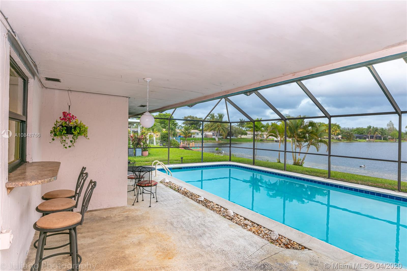Captivating Ranch Pool Home with breathtaking lake views located in the desirable Pembroke Lakes, this home features 3 bedrooms and 2 bath, formal dining and living area overlooking the pool and beautiful lake. The ample kitchen has a built-in microwave, double oven and gas stove, all appliances are under a transferable home warranty. ROOF was recently replaced in 2017, air conditioner and water heater from 2010. Home protected with impact windows and sliding doors. Inviting family room with a real fire place, perfect to relax or for family gathering.