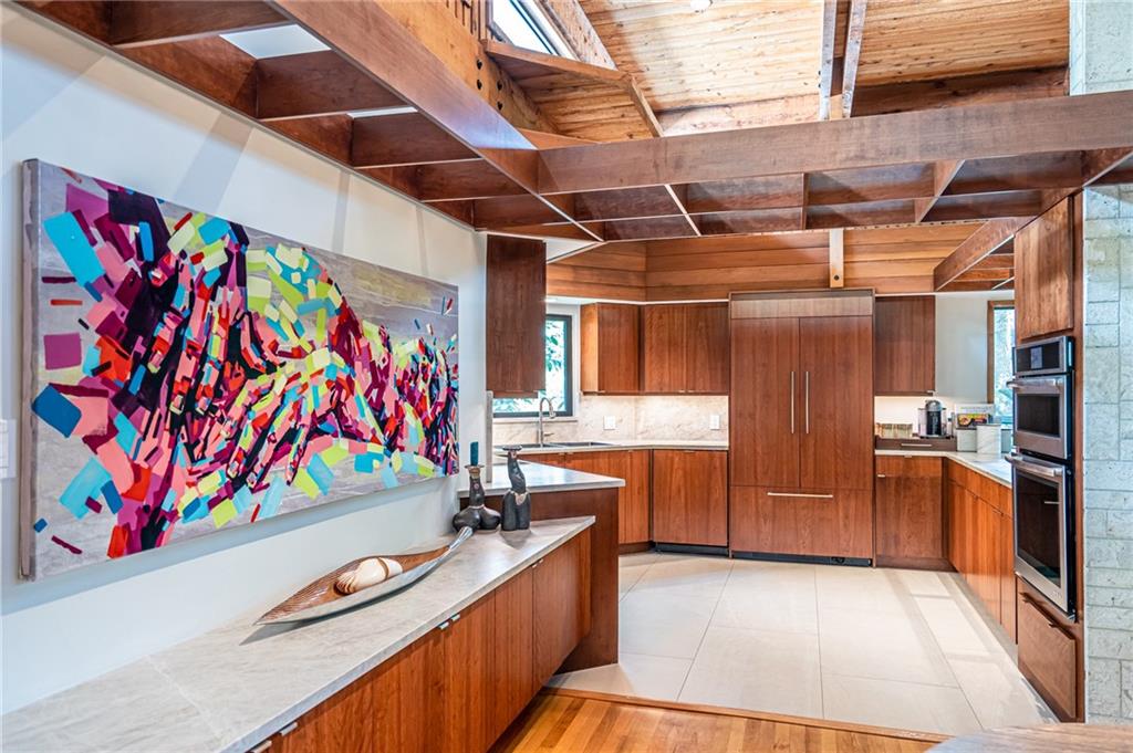 Architectural masterpiece designed by well-known South Florida architect Don Zimmer. Located in highly sought historic Old Floresta in east Boca Raton. Zimmer, inspired by Frank Lloyd Wright, designed the home in the tropical mid-century style & he intended to integrate the beauty of the majestic Oak trees & create a harmony between structure & environment. This unique remodeled 3 bed home plus office has 12 ft ceilings, impact windows & doors, a gourmet kitchen w/leathered quartz countertops, wood burning fireplace, a wet bar w/separate wine cooler & ice maker, gleaming oak & cork flooring & built in furnishings in to provide a clean, uncluttered look. Tropical organic garden pathways w/exotic plants & over 12 different fruit trees. Minutes to downtown Boca Raton & Mizner Park.