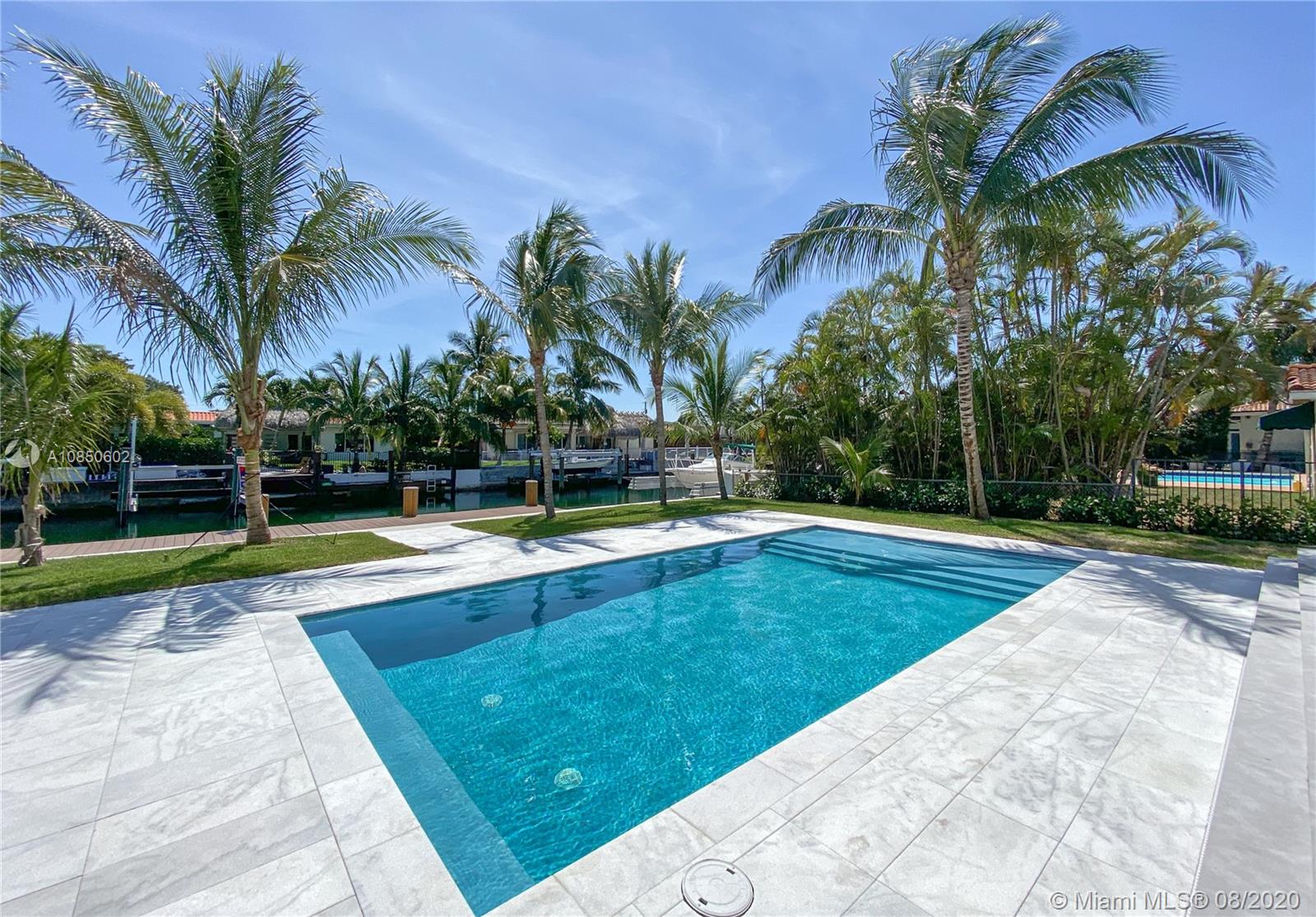Just finished and ready to Move in! 2020 NEW Modern 2 Story Waterfront Pool Home w/Ocean access, No bridges to Bay. 5 bedrooms and 5 Bathrooms on quiet cul-de-sac street. 1st and 2nd floors are solid concrete. This location features New synthetic Dock with 75 feet on the water and no bridges to bay. Water views from many rooms. Open floor plan with soaring high ceilings, Impact/Hurricane rated glass and 10ft floor to ceiling glass sliding doors, natural gas, and huge 2 car garage. Primary bedroom features huge balcony overlooking the pool and water. Located in 24 hr guard gated Islands of Keystone Point, Miami, Florida.