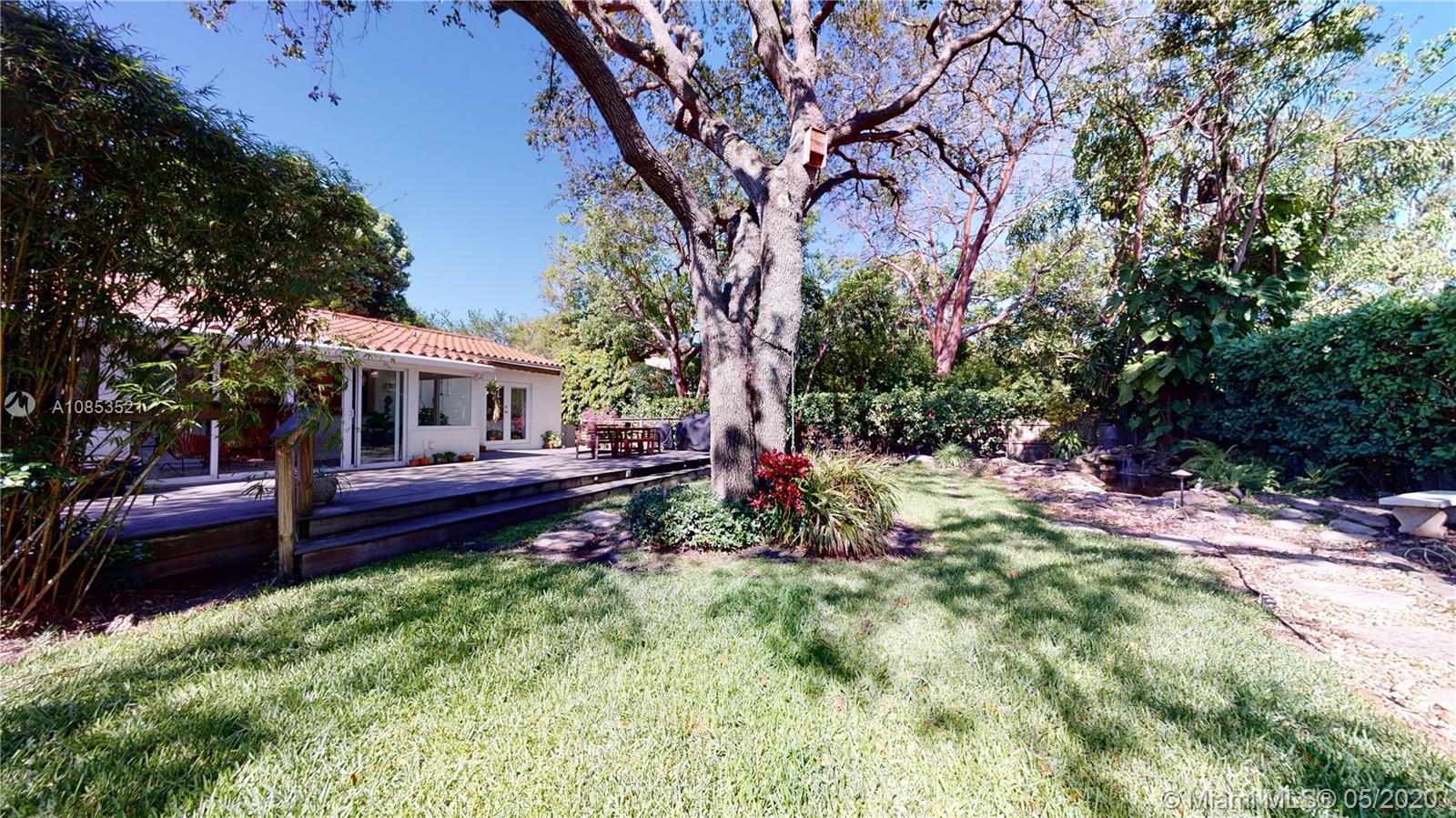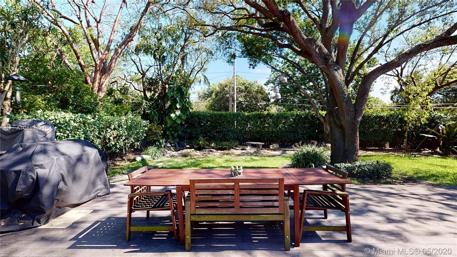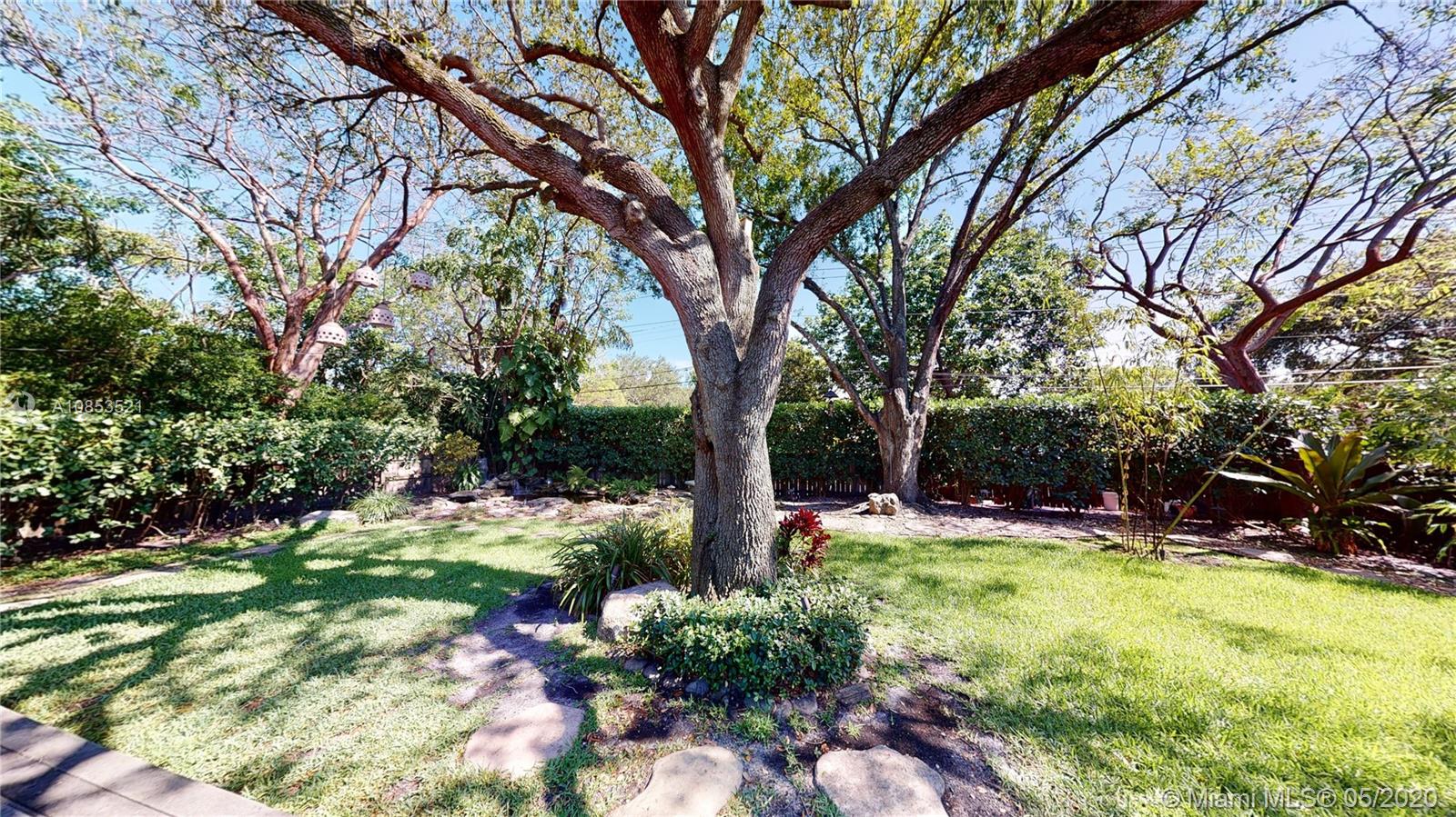 This lovely Garden bungalow is surrounded by a fantastic garden with bamboo, oak trees, privacy hedge and a waterfall with koi pond.The home is 1355 sq ft as per the seller. The home features new kitchen, 2 new bathrooms, bdrm converted to master closet, alarm ready, wifi-sprinkler system and Pergola parking.The floors are wood and sealed concrete.Kitchen area features open plan with new appliances, cabinetry and shelving. Master bathroom is pebbled lined with rain shower. Windows and Glass doors are impact. There are 2 sheds for storage.This home is in walking distance to the new downtown Miami shores.