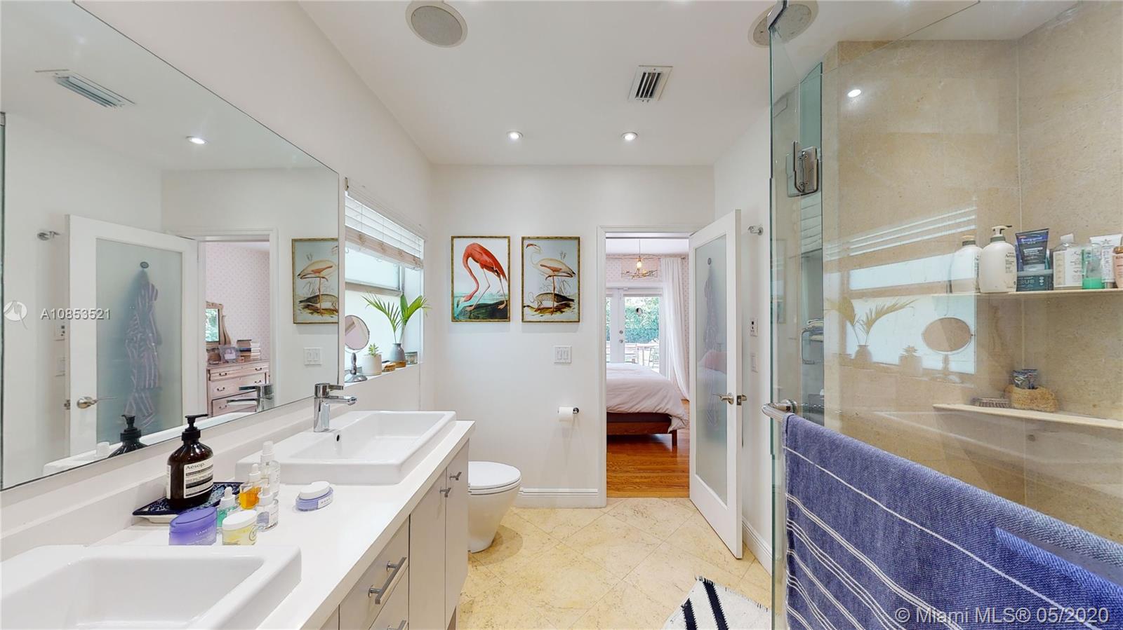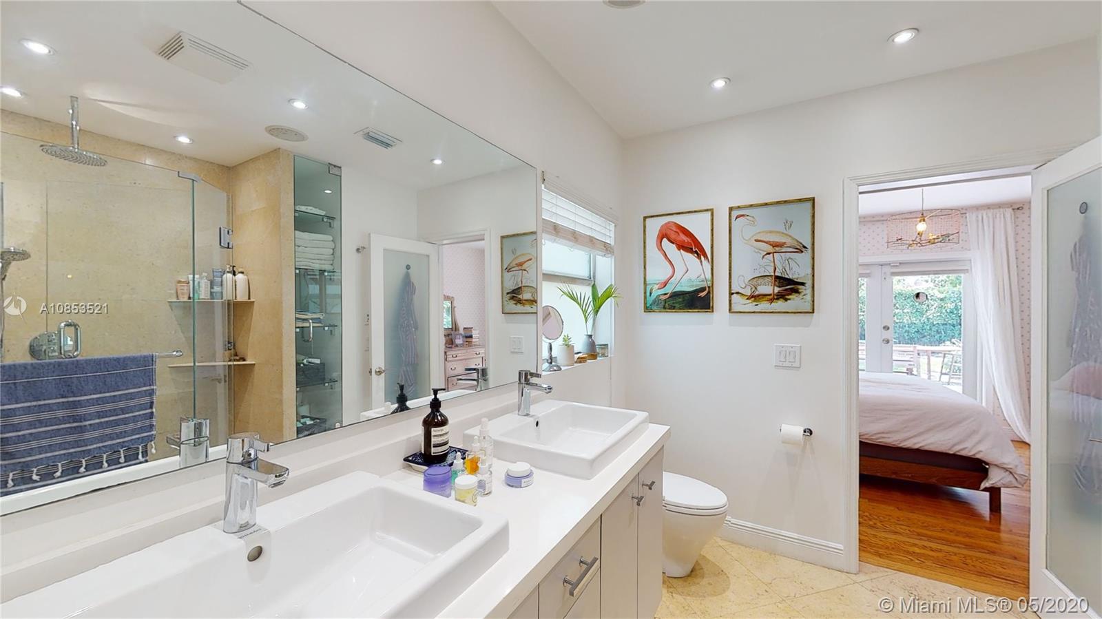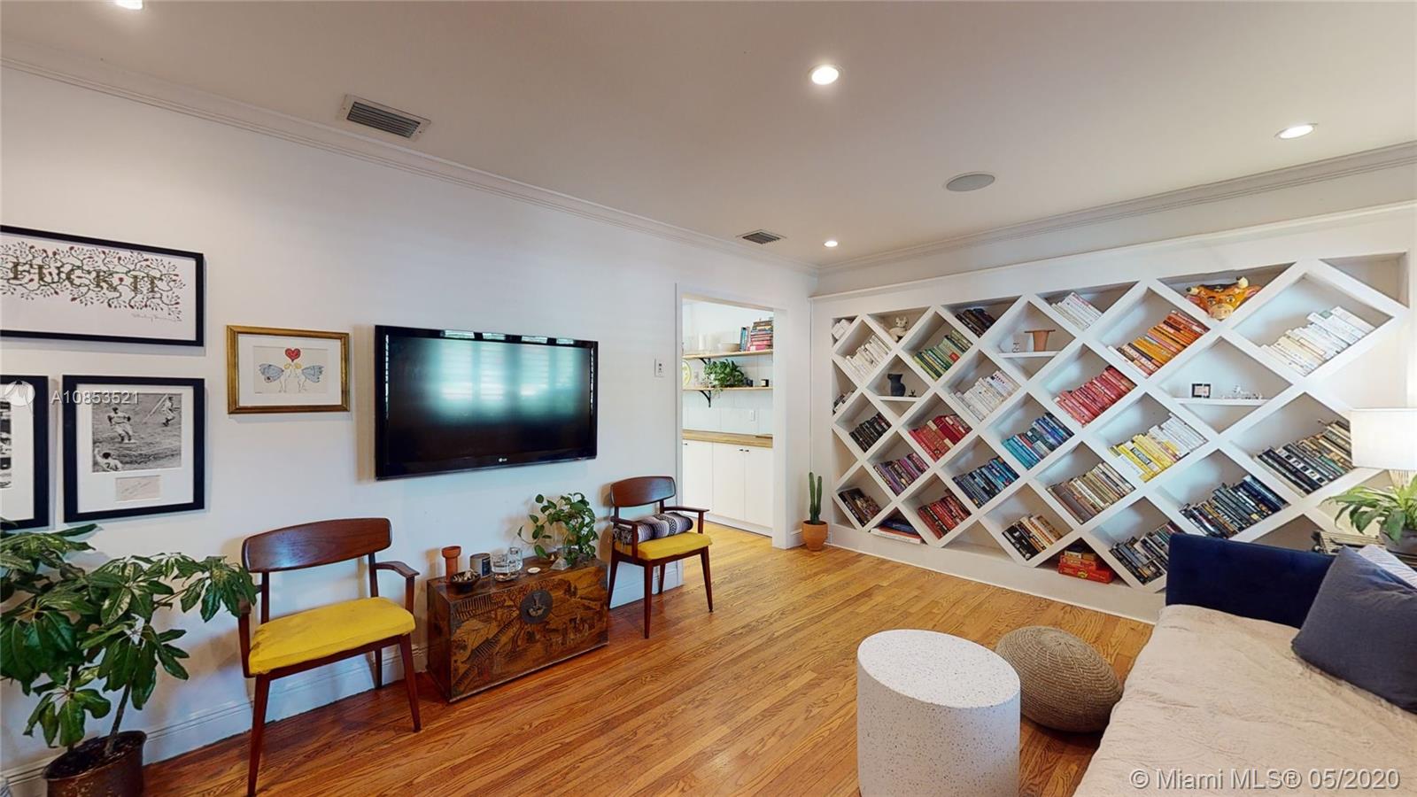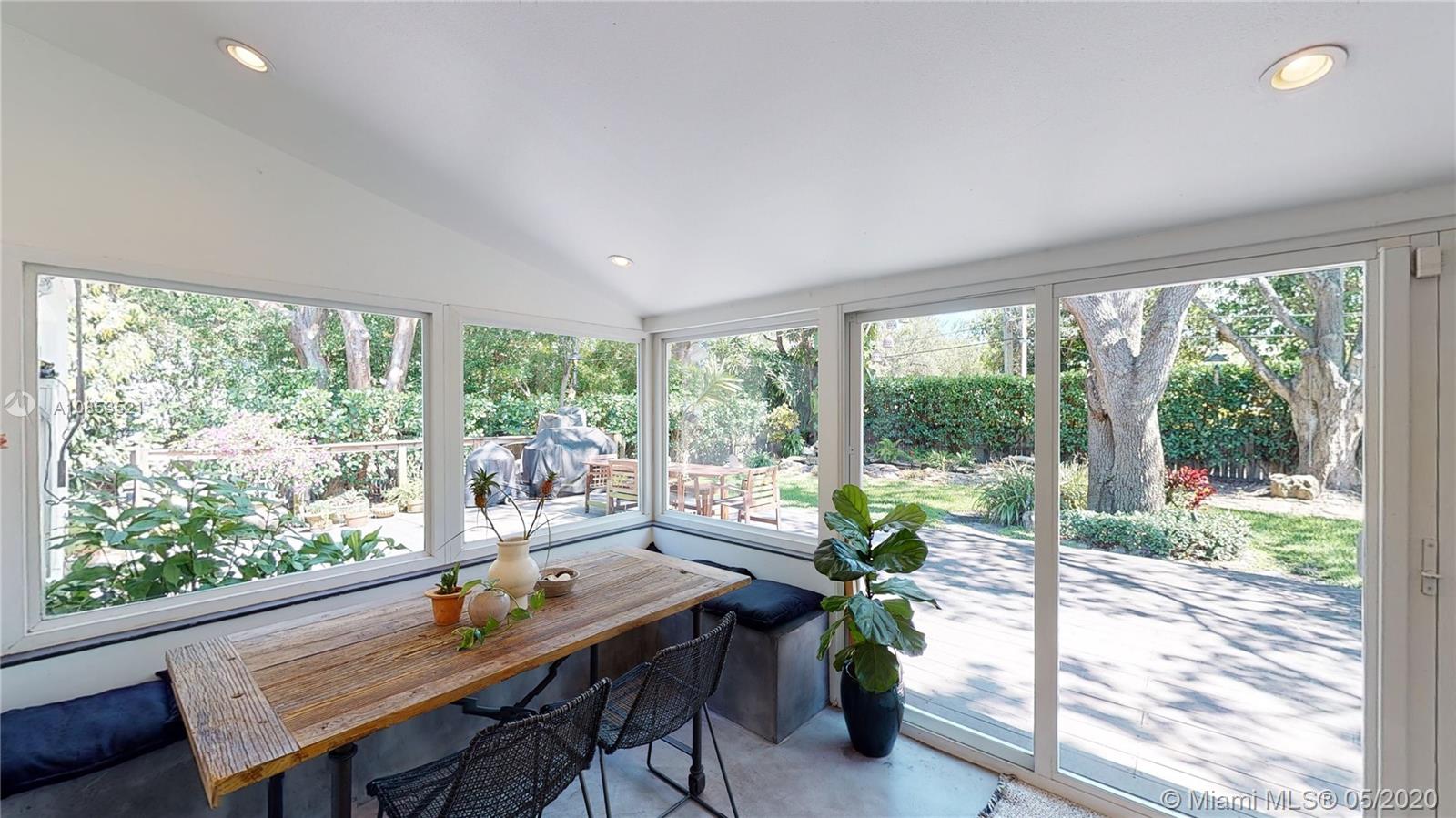 This lovely Garden bungalow is surrounded by a fantastic garden with bamboo, oak trees, privacy hedge and a waterfall with koi pond.The home is 1355 sq ft as per the seller. The home features new kitchen, 2 new bathrooms, bdrm converted to master closet, alarm ready, wifi-sprinkler system and Pergola parking.The floors are wood and sealed concrete.Kitchen area features open plan with new appliances, cabinetry and shelving. Master bathroom is pebbled lined with rain shower. Windows and Glass doors are impact. There are 2 sheds for storage.This home is in walking distance to the new downtown Miami shores.