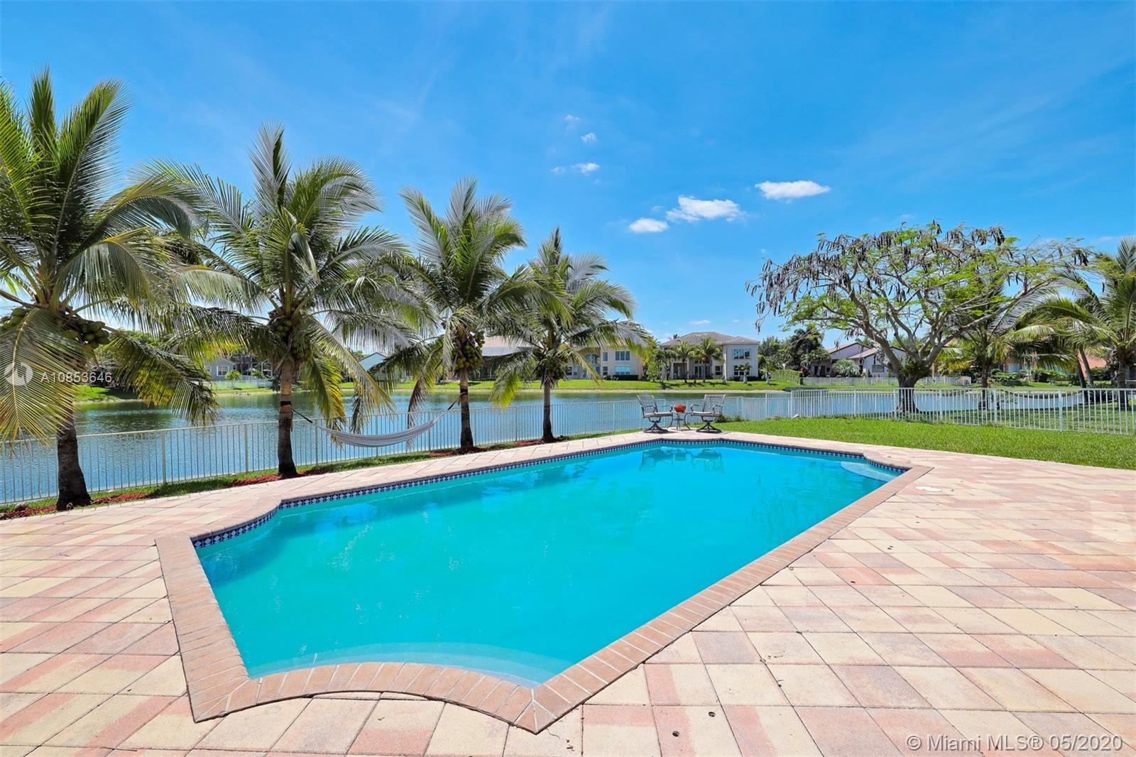 Live in Paradise in this 5 Bedroom 3 Bath Pool & Lake Home at the end of the Cul-de-Sac with a Huge pie shape lot almost 16,000 sq.ft with plenty of room for the kids to play. Spacious layout with lots of windows for lots of natural light, gourmet kitchen with 42" dark wood cabinets, granite counters, split floor plan, huge master bedroom and bath with jacuzzi tub, 2-zone a/c, recessed lighting & crown molding throughout. Sunset Lakes is one of the best communities in South Florida, association is only $209 a month which includes,24 hr manned guard house, huge gym, club house, tennis court, basketball court, cable & ADT alarm.