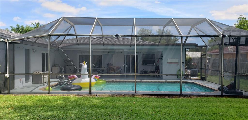 REDUCED...Beautiful 4 bdrm, 3 full bthrm home on an oversized lot & large driveway. Well kept lawn with an avocado tree in back yard. The home has barrel concrete roof, resurfaced patio deck and a beautiful 15x30 screened-in pool with hand rails. 2 of the 3 bathrooms have been remodeled. There is white ceramic tiles in the hallway, family room and kitchen. Neutral color carpets in the bedrooms. The house is 100% hurricane proof - all windows ,all patio doors, front and back doors including the garage door. The house comes equipped with a propane powered Generator in case of power outages. Entire property has motion detectors, security lights and a camera monitoring system visible on a hand held device. NO HOA ..a must see !