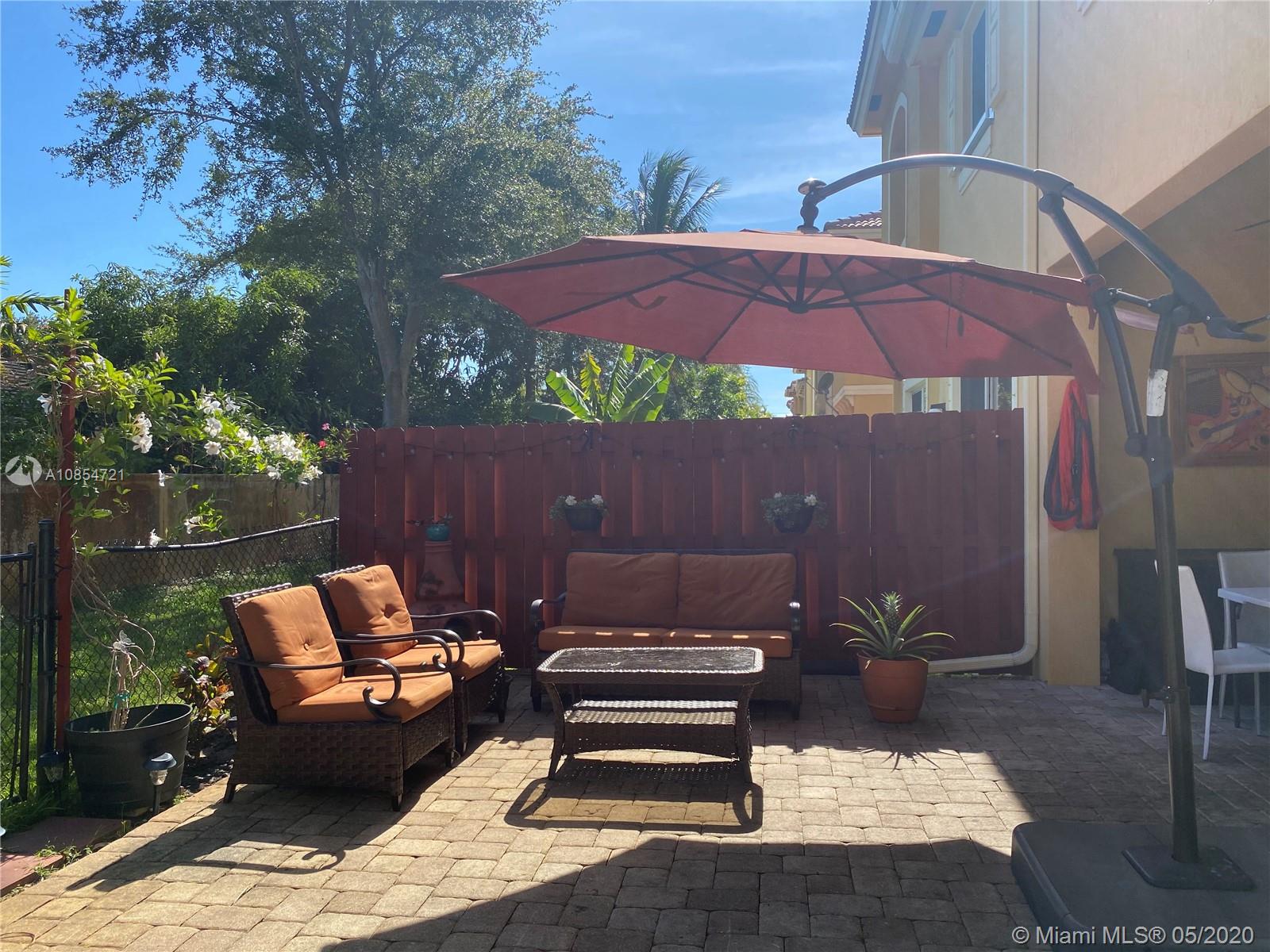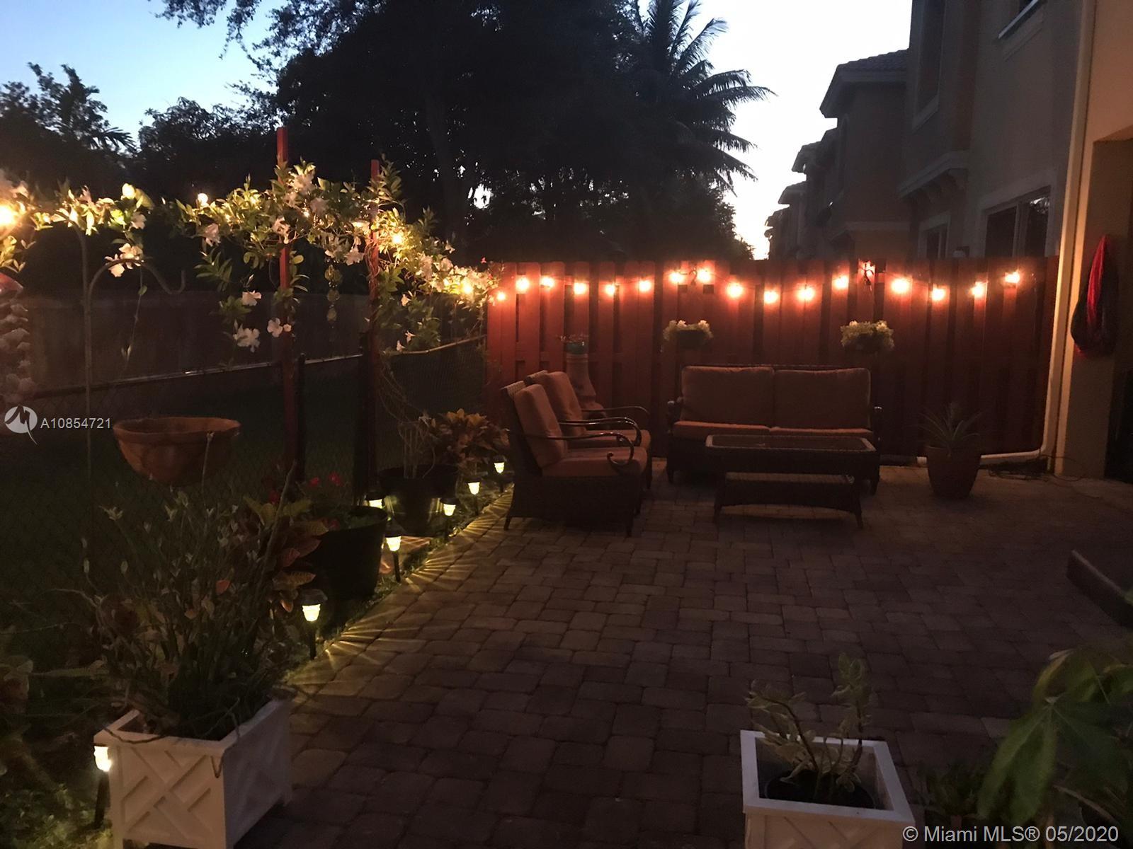 Tropical 4 bedrooms, 2 baths & half corner townhouse with 1 car garage in prestigious The Village at Miramar. Kitchen feature granite counter tops, wood cabinets, eat-in kitchen, & stainless steel appliances. New flooring on second floor, stairs, & master bedroom. Enjoy an spacious living areas. Master bathroom offers a dual sink vanity, separate shower, & roman tub. Convenient laundry room located on second floor. NEW: A/C, stove, & W&D. Huge & private fenced backyard with avocado, guanabana, mango, & coconut palm trees. Community features a clubhouse, community pool & playground. Centrally located near the Pembroke Lakes mall, schools, houses of worships, Pembroke Gardens & major roads. HOA includes roof repairs & replacement, exterior building, lawn care, alarm & security.