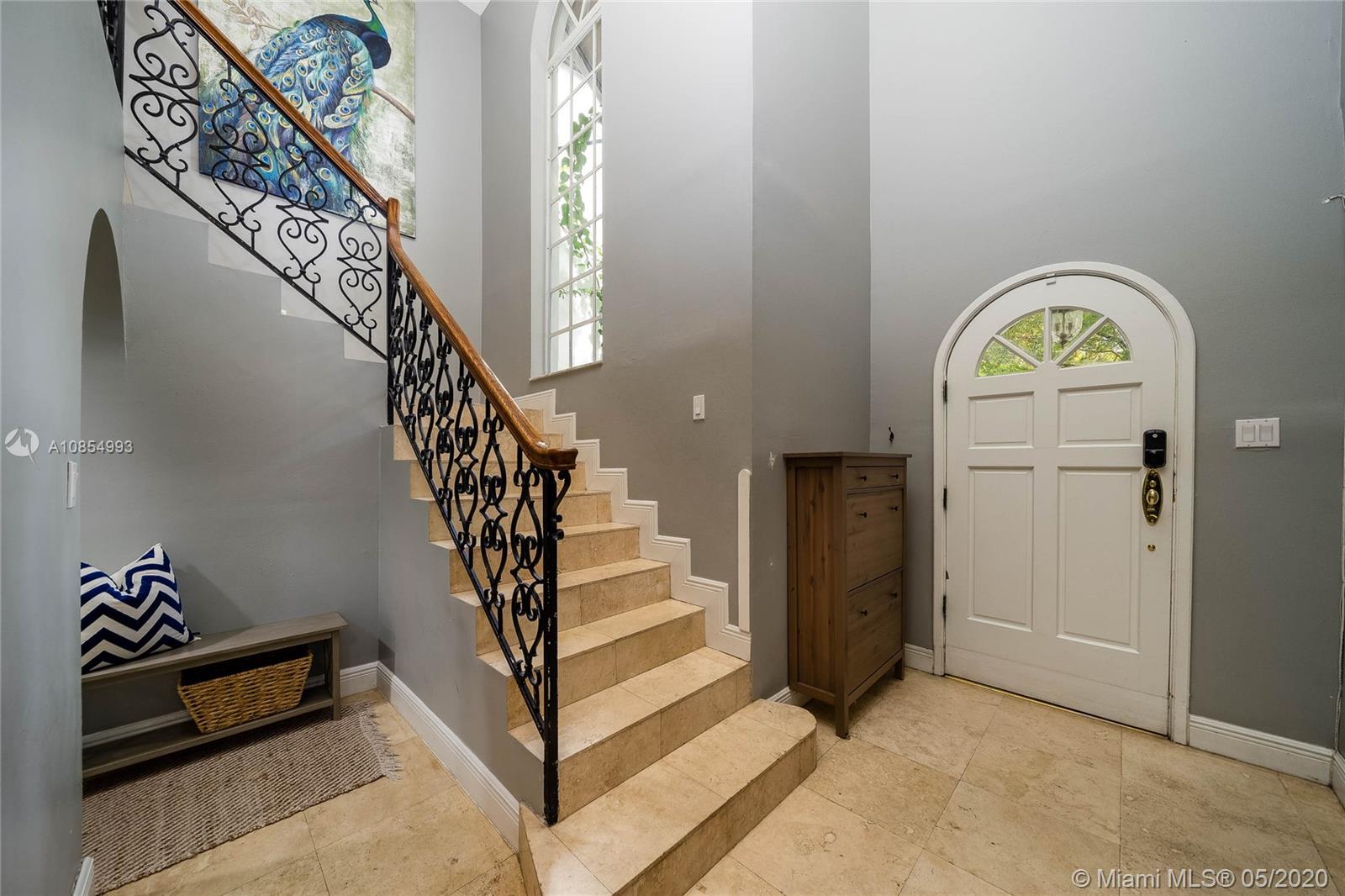 Exquisitely remodeled Coral Gables Classic! Built in late 80’s w/Spanish architectural details & modern appointments. High ceilings, travertine marble & wood flrs, fireplace. Powder room downstairs. Stunning open kitchen for entertaining features: Sub Zero refrigerator & Liebherr freezer,Viking range,porcelain Farmhouse sink,Colorado gold elegant marble kitchen counter w/built in dining, wood cabinets. All bedrooms upstairs. Master suite has 2 closets. Convenient office alcove for working @ home or doing homework, PVC pipes, fenced yard, lush landscaping for privacy, rm for a pool, canvas covered patio w/Mexican tile floors, new drive-way. Ideally located close to Granada Golf Course, the airport, downtown Miami, fine dining, great shopping, The Biltmore & more! Gorgeous tree lined Street.