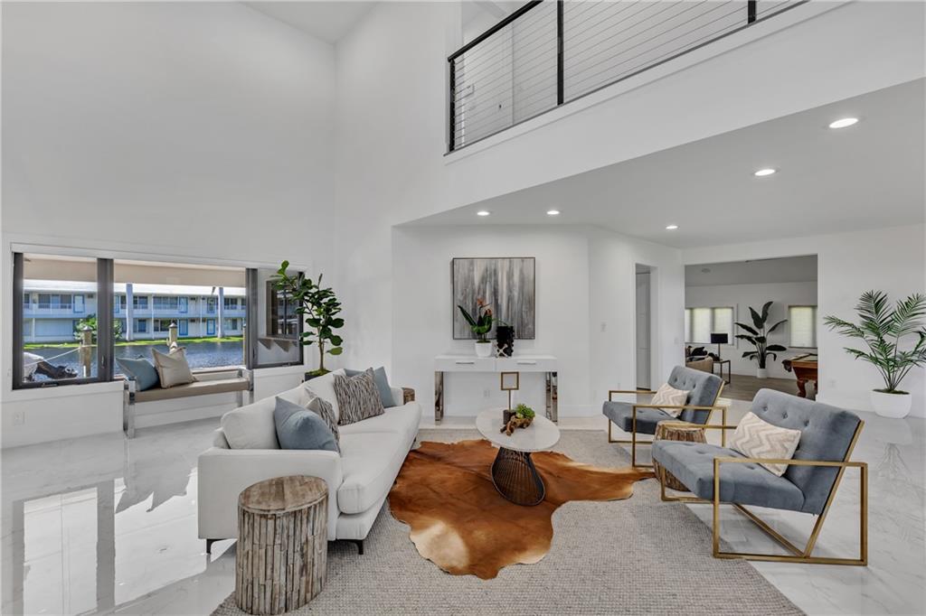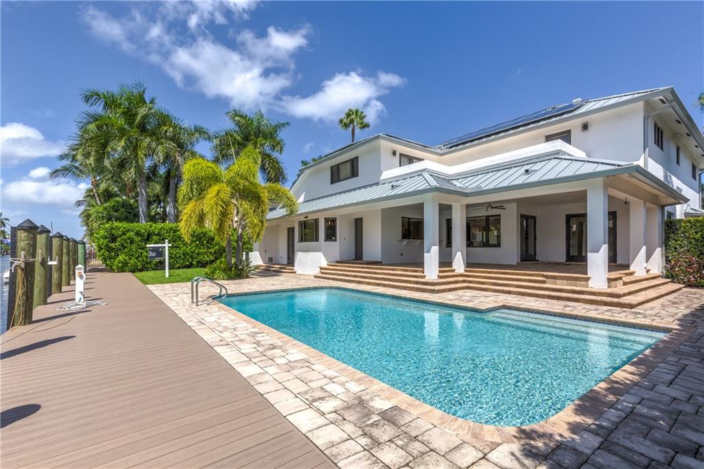 Newly renovated Coastal Contemporary Estate - this stunning 4 Bed/3.5 bath w/loft residence offers the finest elements of transitional architecture. Extensive renovations completed in 2019, over $500,000 in upgrades. 85' WF with new dock, raised seawall, & electric. Impact windows and doors, porcelain tile on first floor, new hardwood floors on stairs & second floor. New railing all along second floor w/views of living room below. Large covered patio area overlooking pool and water. All bathrooms renovated. Most amazing family room off dining room and kitchen area. New metal roof plus solar panels that reduce electric bill up to 40%. 2 storage areas which is perfect for boating & pool equipment etc. State of the art electronic system including surround sound. Don't miss opportunity to see!