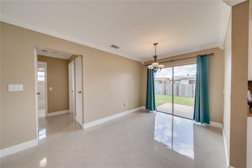 Beautiful and spacious 3 bedroom 2 bathroom in the heart of Sunrise. Walk into a large ample living room with neutral tile throughout the house, modern crown molding and a large window for natural light. Head to the alluring formal dining room with sliding doors for more natural light. Kitchen has modern white cabinets and stainless steel appliances. Comfortable family room for entertaining guest. Master bedroom features a completely remodeled master bathroom. Split bedroom layout and every bedroom features a ceiling fan. Relaxing patio to enjoy breezy evenings outside. Huge fenced backyard, enough to put a pool if desired. No HOA. No carpet. No rental restrictions. Close to the Sawgrass Mills Mall and major shopping centers and restaurants. Priced to sell.