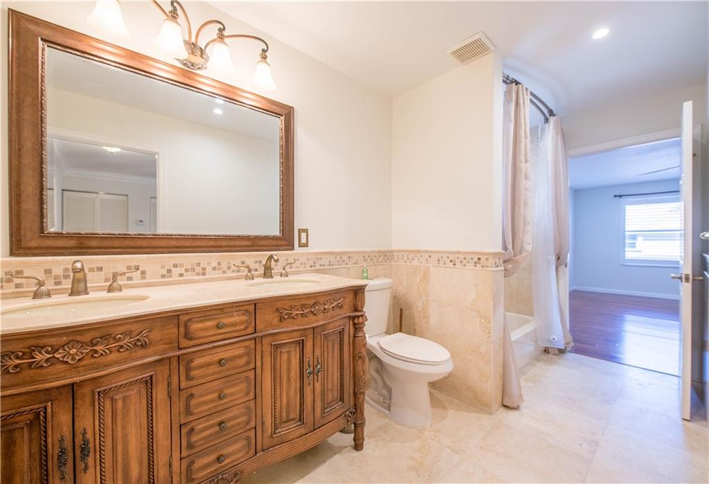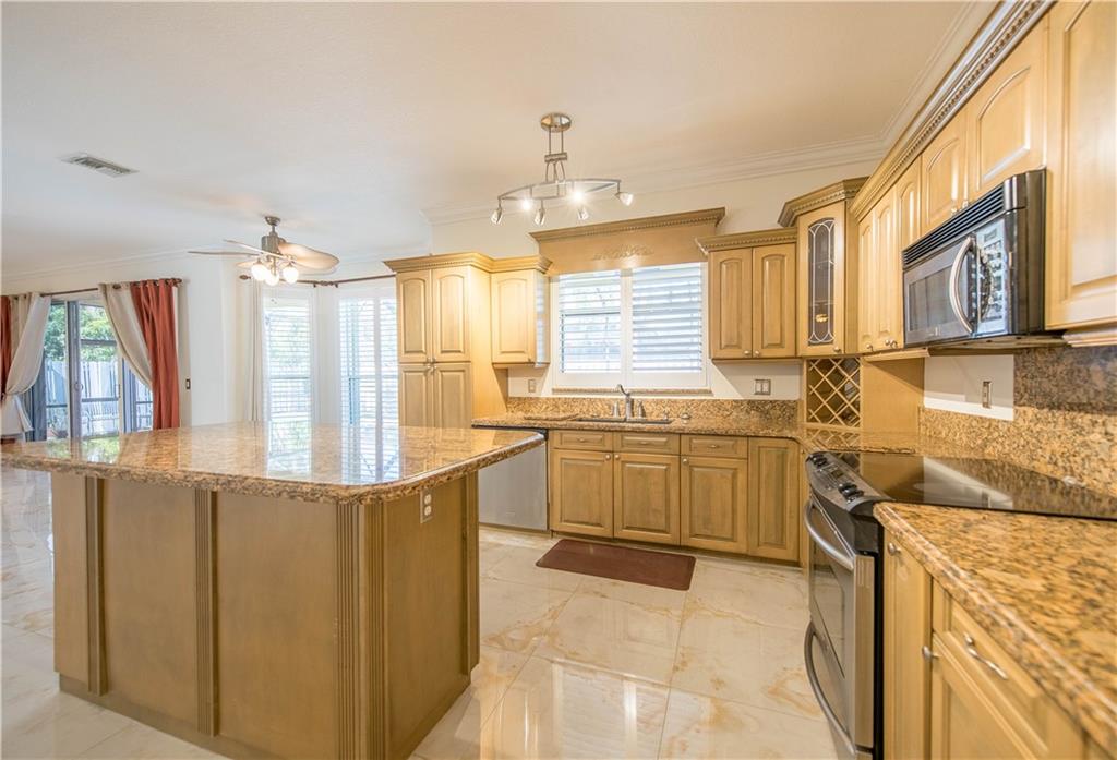 Spacious and ready to move-in home. Freshly painted inside with a neutral color, upgraded gourmet kitchen with an oversized center island, wooden cabinets, granite countertops, and stain steel appliances. Beautiful porcelain floors on the first floor and Brazilian cherry hardwood floors on the stairs and second floor along with iron staircase. Large master bedroom with sitting area. Remodeled master bathroom with steam shower system and travertine tiles. Accordion shutters throughout the entire house, new A/C unit and water heater, and plantation shutters. Enjoy the screened backyard with pool and an outdoor summer kitchen.
