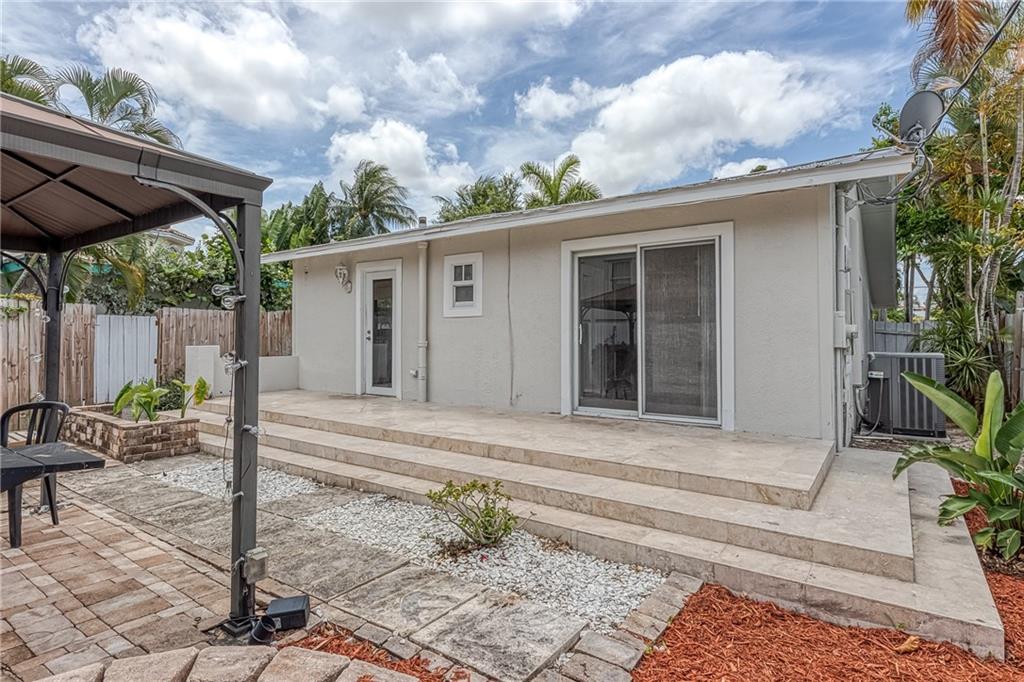 OLD FLORIDA CHARM! Fantastic 2 bed/2.5 bath home with a 1 bed/1 bath guest suite above the 2 car garage. The main house is full of charm with mature trees, large front patio, decorative woodwork & real fireplace. Hurricane Impact windows & doors, wood floors, 2015 a/c, large private yard. Updated kitchen with breakfast bar. The fully fenced yard is currently separated to provide privacy between the units. Remove the fence & add a pool! Main yard has a firepit, BBQ, gazebo & is a great space to entertain. Long side driveway leads to the 2 car garage.Great for an RV, boat, or to park cars.Guest suite has a full kitchen, separate laundry & storage room, & can be rented for income or be the perfect home office! Enjoy the tree lined streets of Victoria Park & easy access to Las Olas & the beach