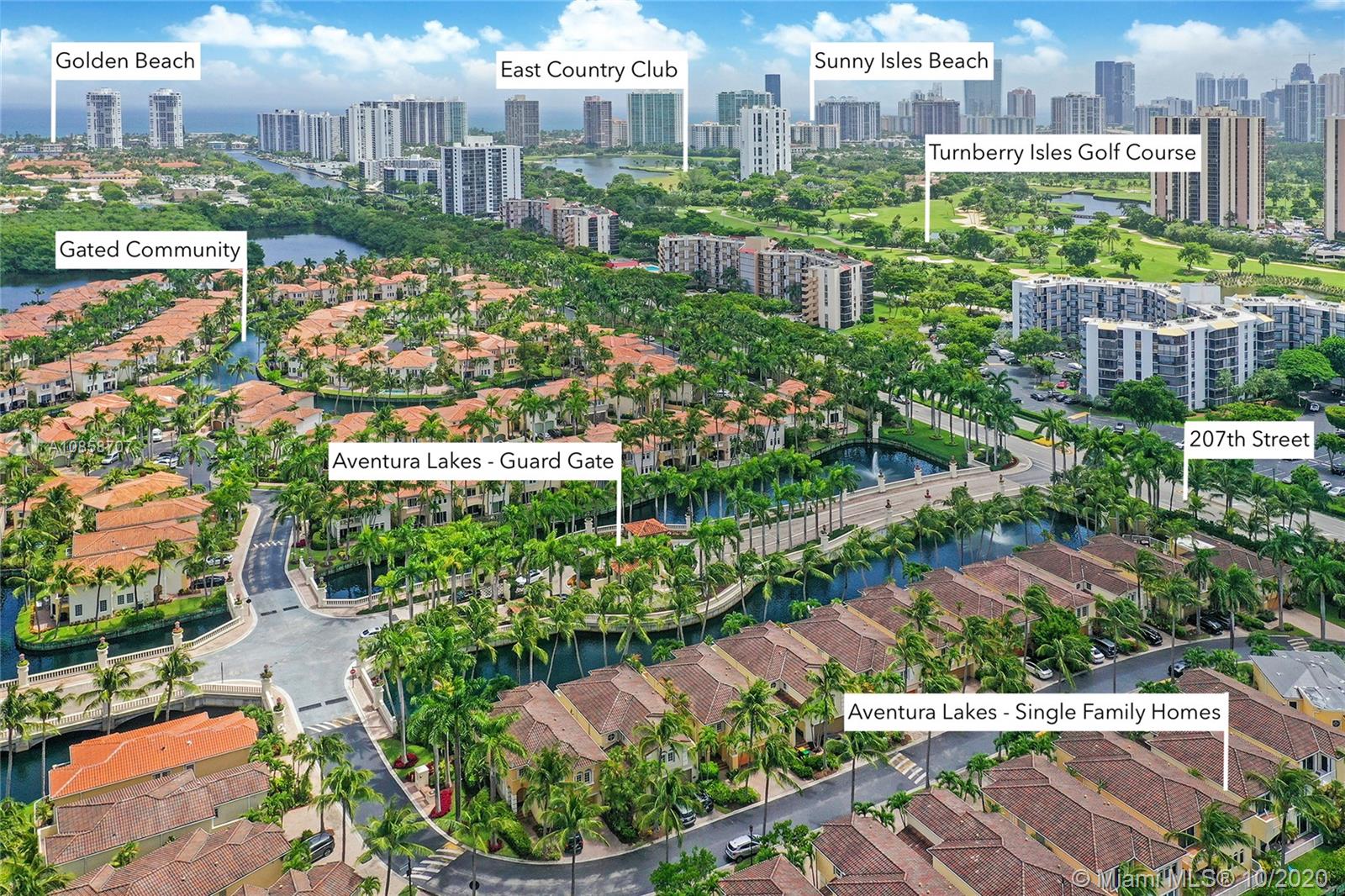 Community of single family homes gated in the City of Aventura. This friendly family neighborhood offers abundant of Private and Public schools, Country Club PGA Golf Course with membership, Parks and Trails pathway within the City, superb shopping experience at the Aventura Mall and diverse entertainment venues. The Beach is a short ride by car or bike. This home is a 4-bedrooms | 3.5 bathrooms two story with Marble floor in the main level. The open concept style allows the natural light to flow seamless to enjoy the water view and landscape surroundings. With high ceilings, two balconies, four cars parking and located in a cul-de-sac street. The community offers a club house, fitness center, Pool and hot tub, recreational center, 24/7 Guard Gate and onsite management. Live,Play and Shop!