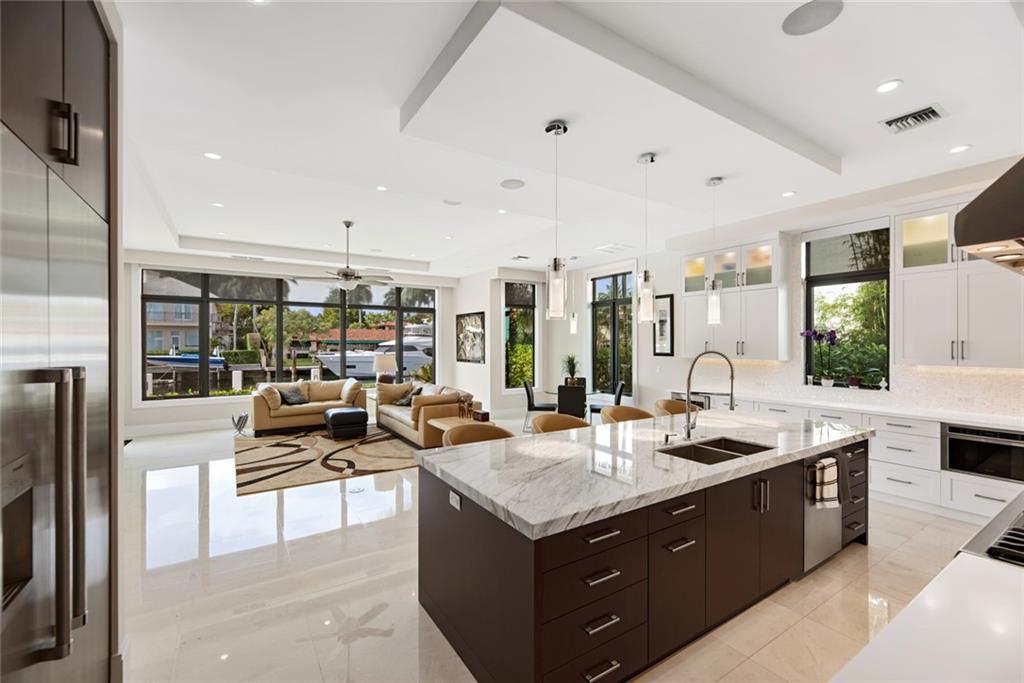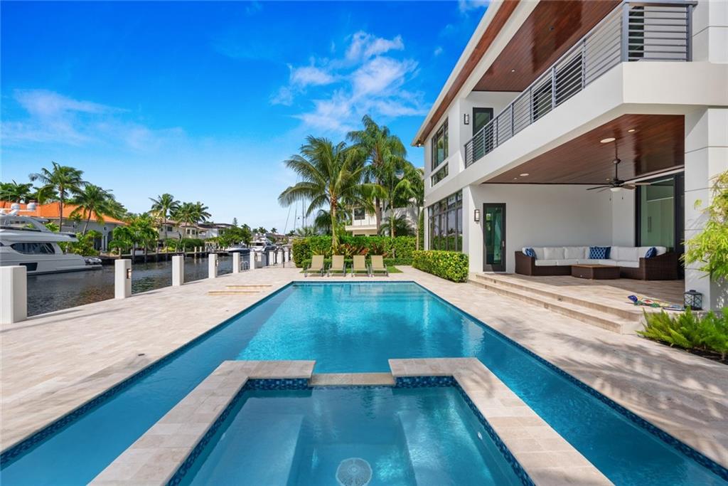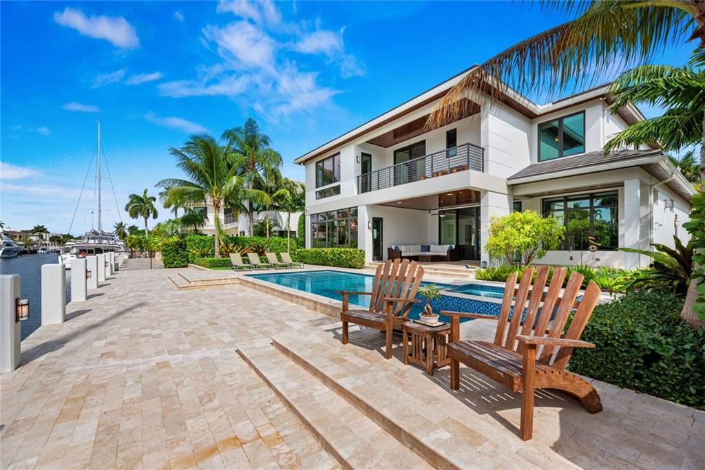 Timeless architecture in this Recently built Randall Stofft designed Waterfront home in Seven Isles! This stunning 4 BR/4.5 BA residence, boasts over 5700k TSF, with impeccably curated interiors and baths, volume ceilings and expansive glass. Chefs kitchen with Thermador appliances, Great Room, Dining and Living areas all open to the water and flow to generous covered loggia, leading to heated salt water pool and spa & 80' concrete dock. Home theater, full cabana bath, plus a dramatic powder room. 2nd level with 4 BRs, 3 face the water, a luxurious Owners suite, with sumptuous Bath, two walk-in closets and a tranquil terrace. Huge Utility area and reading nook complete the floor. Control 4/Lutron, Elevator, Natural Gas, Security Patrolled 7 Isles. Minutes to Beach, Las Olas & DWTN.
