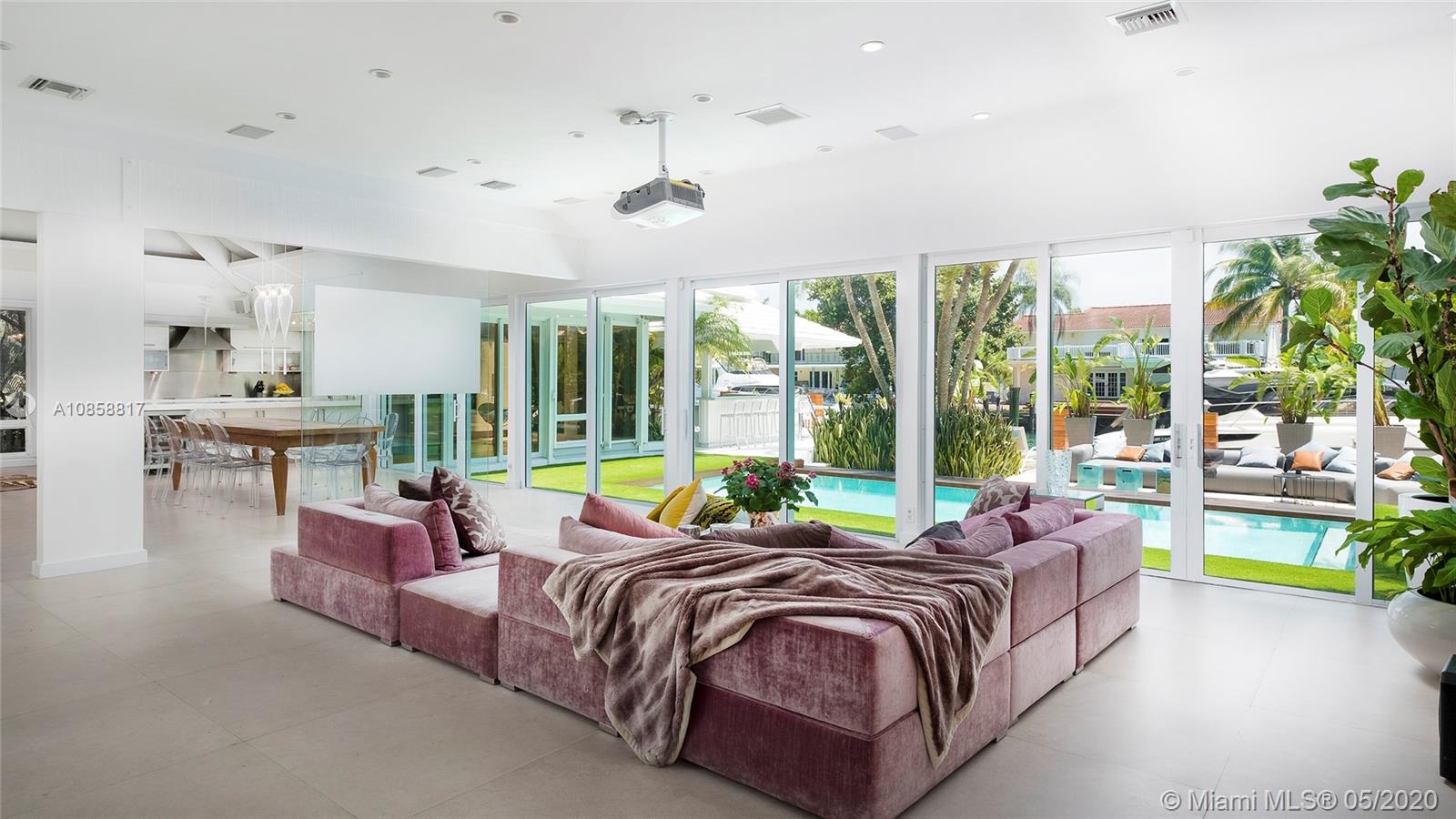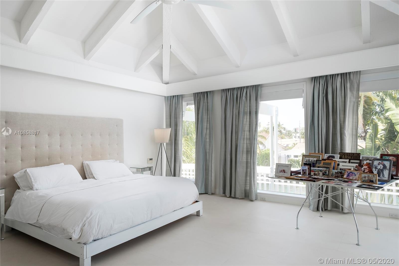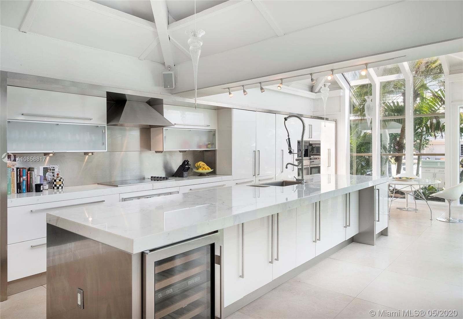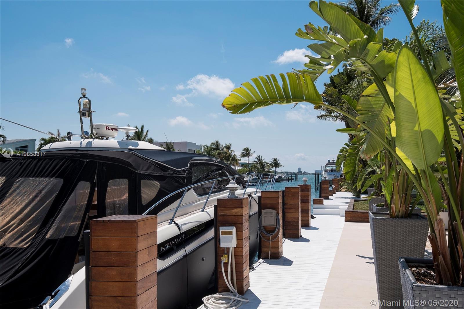 Exceptional St. Barth’s style tropical 18,750 SF double lot estate. Features 6,771 Adj SF area plus professionally designed open layout kitchen/dinning/living provides an ideal lifestyle for large dinner parties, entertaining or lounging w/family. High ceilings & impact sliders bring in natural light making for an incredible indoor/outdoor feel. Private master suite encompasses entire 2nd level & features high beamed ceilings, living area, office & 2 walk-in closets. Luxurious limestone master bath w/free-standing deep soaking tub, glass shower & access to huge private terrace offering open water bay views. Exterior features infinity edge pool, covered bbq/bar pavilion, curated landscaping, 150 FT dock w/no fixed bridges & direct ocean access. Minutes to Bal Harbour shops & beach.