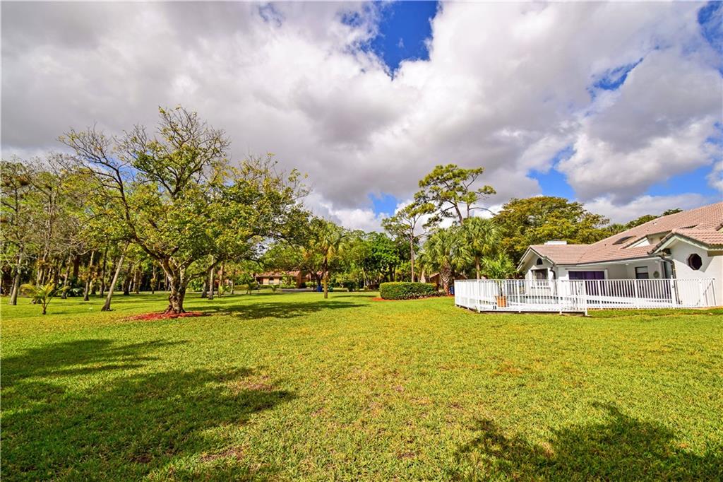 Spacious 4/3 pool home on corner acre homesite in desirable development of Whispering Woods. Quality construction & well maintained. Home site offer a lot of privacy. Too many features to list here: volume & vaulted ceilings, split bedroom floorplan, formal living & dining, renovated kitchen with large eat-in component, extra large family room with stone fireplace & wet bar with kitchen extension, full hurricane shutters (accordion & panels) & hurricane impact garage doors, covered patio with built-in grill, 3-car garage with extra tall doors & attic access, well for main sprinklers, City water for sprinklers next to home... $12,500 buyer credit offered at full price. 24/7 guard gated. Conveniently close to everything: HWYs, plazas w shopping & restaurants, parks, schools, hospital...