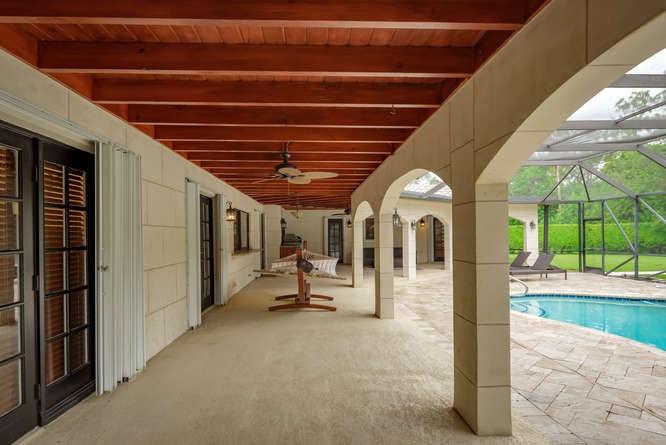 This Gorgeous home is in the pristine gated community of Whispering Woods. Enter through its warm elaborate foyer to a great welcoming living area that includes a distinctive upstairs library. The large split floor plan includes porcelain tile and solid wood floors throughout along with beautiful Venetian plaster walls. The home boasts a large private Master ensuite with newly installed flooring. There are also three guest bedrooms and one of them is an ensuite that can be great as an in-law suite. Screened-in patio with a large built-in grill along with an enticing swimming pool. Your buyer will definitely enjoy the privacy of this 1-acre lot backed by the preserves. Do not take my word for it; stop by and bring your fussiest buyer. We would love to hear from you!