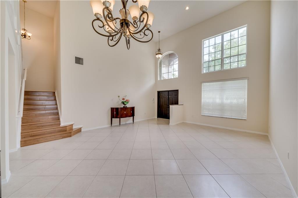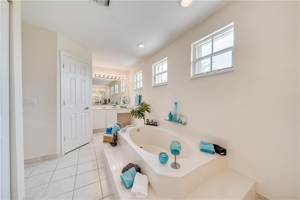 This is a STUNNING lake & pool home! Beautiful pool area, surrounded by extravagant pavers, raised spa, and lake views from 2 sides of lot. Huge extended roofed patio, just perfect for lazy morning coffee. Soaring ceilings, neutral colors, large tiles flow thru-out main level, leading to huge open kitchen. Kitchen has been remodeled with real wood cabinets, large center island, & custom granite counters.Large bedroom and bathroom on main level, with master and 2 other bedrooms upstairs. Bamboo floors upstairs, master features large walk-in closet and tranquil master bath, with double sinks, separate shower and roman tub. The covered patio overlooks the saltwater pool, with views of lake behind. Accordian shutters, interior freshly painted - this house is move-in ready. Easy to show.