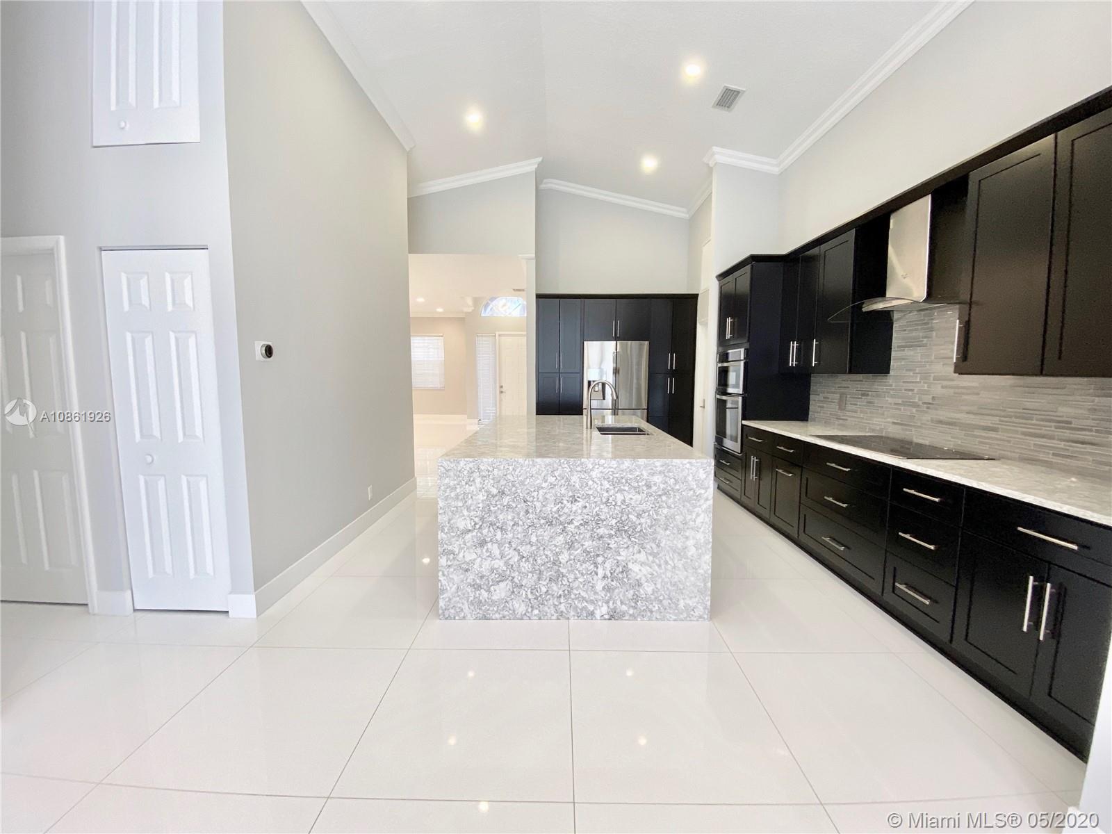 Fully remodeled 3 bed/2 bath turnkey home nestled in the beautiful city of Pembroke Pines, Florida within the gated community of Parkside at Spring Valley. This house has been completely remodeled and is one of a kind. It has tile throughout the living area and bathrooms as well as luxury vinyl plank in all of the bedrooms. The contemporary kitchen has quality stainless steel appliances, upgraded cabinets and stylish quartz countertops which includes a magnificent waterfall style island with an added stainless steel wine cooler. The bathroom vanities, shower doors, light fixtures, plumbing fixtures and toilets have all been upgraded as well. And last but certainly not least, the interior and exterior of the home have recently been painted.