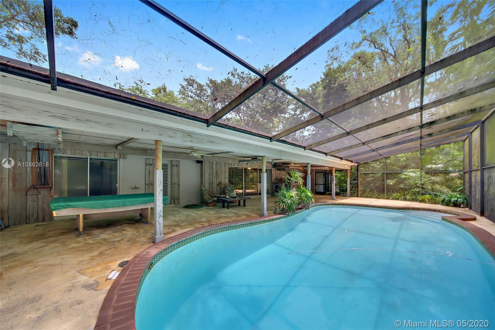 Jewel property in a natural hammock setting in the Devonwood neighborhood of Pinecrest. This was the very first lot/house selected / developed for its wonderful native landscape with rare plants, trees, and coral rock formations including a solution hole serving as a natural playground. Maintained by its original owners, the home is ready for personalization and has a spacious layout & split bedroom plan -SEE FLOOR PLAN IN PHOTOS. Roof is 4 years old. Master suite is flanked by windows, reminiscent of a tree house overlooking the garden. Spacious rooms, including formal living & dining rooms and kitchen with eat-in counter open to family room -All have sliding glass doors cascading over a great screened patio-pool area. Indoor laundry room, spacious 2 car garage and much, much more.