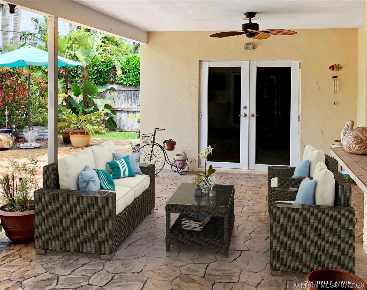 A highly desirable neighborhood that maintains its historic charm. Priced to sell!. You can bike to the beach and enjoy a stroll by stunning Southlake. Great Location! 2018 Tile Barrel Roof, 2018 AC Condenser, 2 Car Garage, Carport, and circular driveway. Wonderful kitchen with a bright and lovely view of the garden. Granite countertops and top appliances. Great split floor plan for privacy. Family room with a built-in entertainment center for 3 TVs. Oversized master bedroom with California Closets, vanity and his and hers showers, bidet. Palmetto Shutters throughout home. Outdoor covered patio and fenced backyard with room for a pool. Great home office space with a patio view. Quiet area yet close to downtown Hollywood, beaches, shops, malls, restaurants, parks, and marinas.