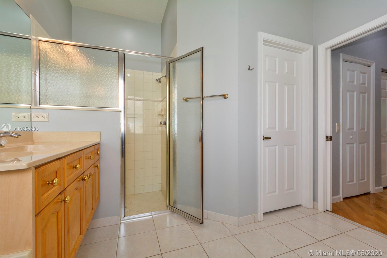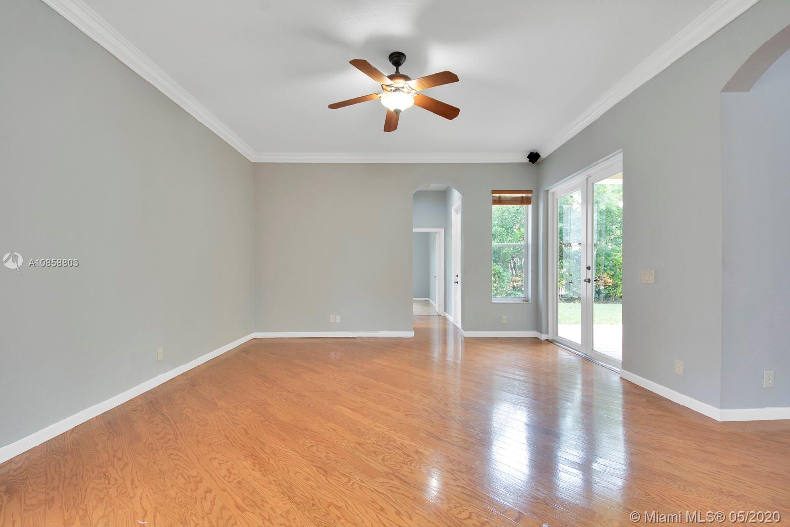 Fabulous four bedroom three bathroom one story home in Weston Hills Country Club. Upgrades include wood floors throughout, center island kitchen with stainless steel appliances, granite counter tops and snack bar overlooking family room. French doors open to covered patio for outdoor enjoyment and fenced yard surrounded by lushly landscaped for ultimate privacy. Triple split floor plan. Recently painted. AC 2017. Two car garage and circular driveway for easy parking. Guard gated community in the heart of Weston.
