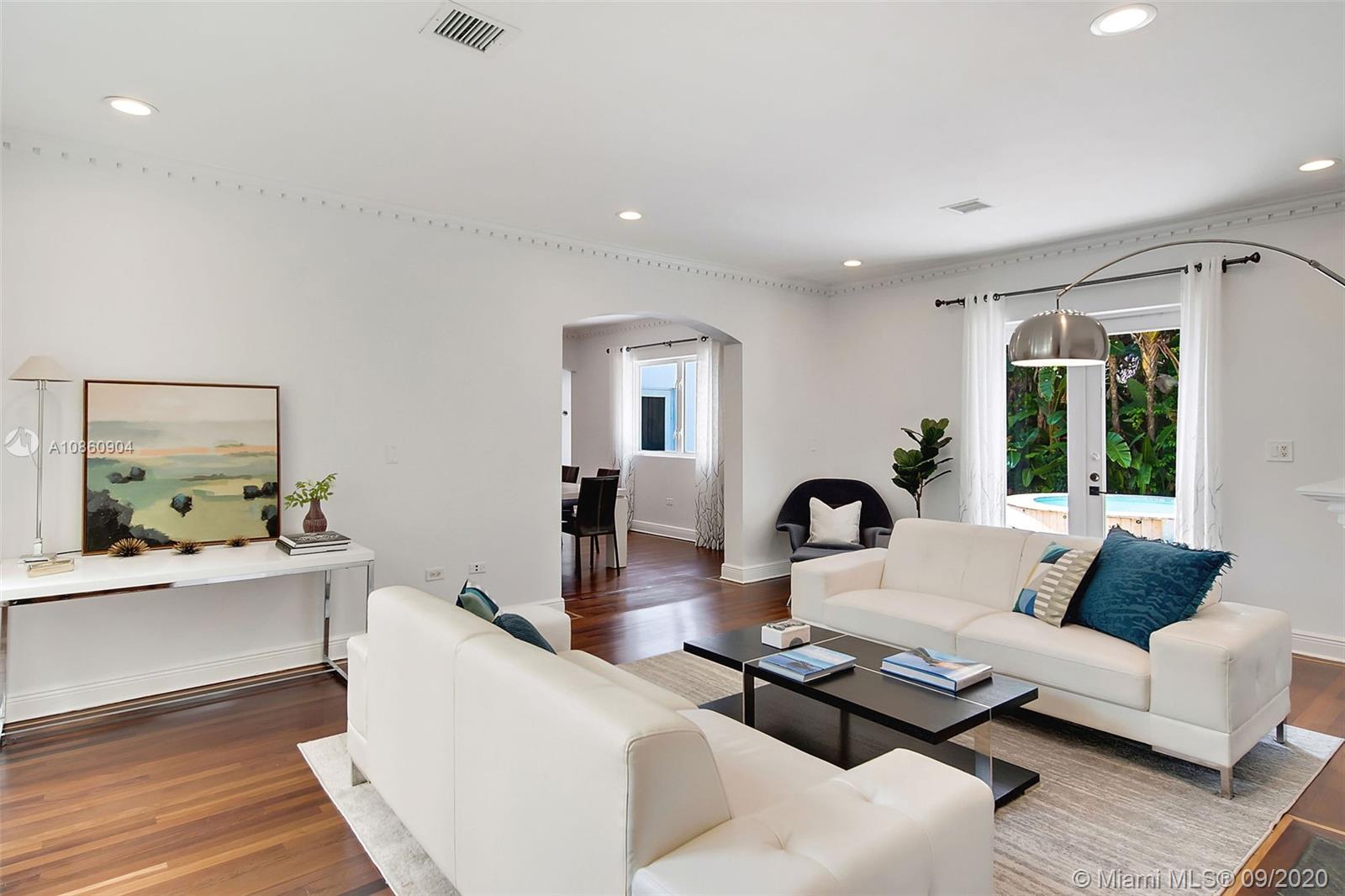 Charming 4 bed/ 5 bath villa nestled on 10,000+ sqft corner lot on Miami Beach's exclusive Sunset Island III. Gated, private lifestyle & a short stroll to Sunset Harbour shops & restaurants- a buzzing hot spot for some of Miami's most talented chefs, premier gyms, markets, marina- min. to Lincoln Road Mall & the sandy beach. The home features Oakwood floors, French doors, a fireplace off living & formal dining room, maids quarters + an intimate media room easily convertible to a 5th bedroom. The huge corner lot has 2 separate areas: an enclosed grassy fenced yard & separate villa-style outdoor patio w/ a fantastic pool, Jacuzzi & outdoor shower. Two driveways: 1 gated covered awning plus a generous free-standing shed for bikes/paddle boards, etc. Superb location- Check out the video!