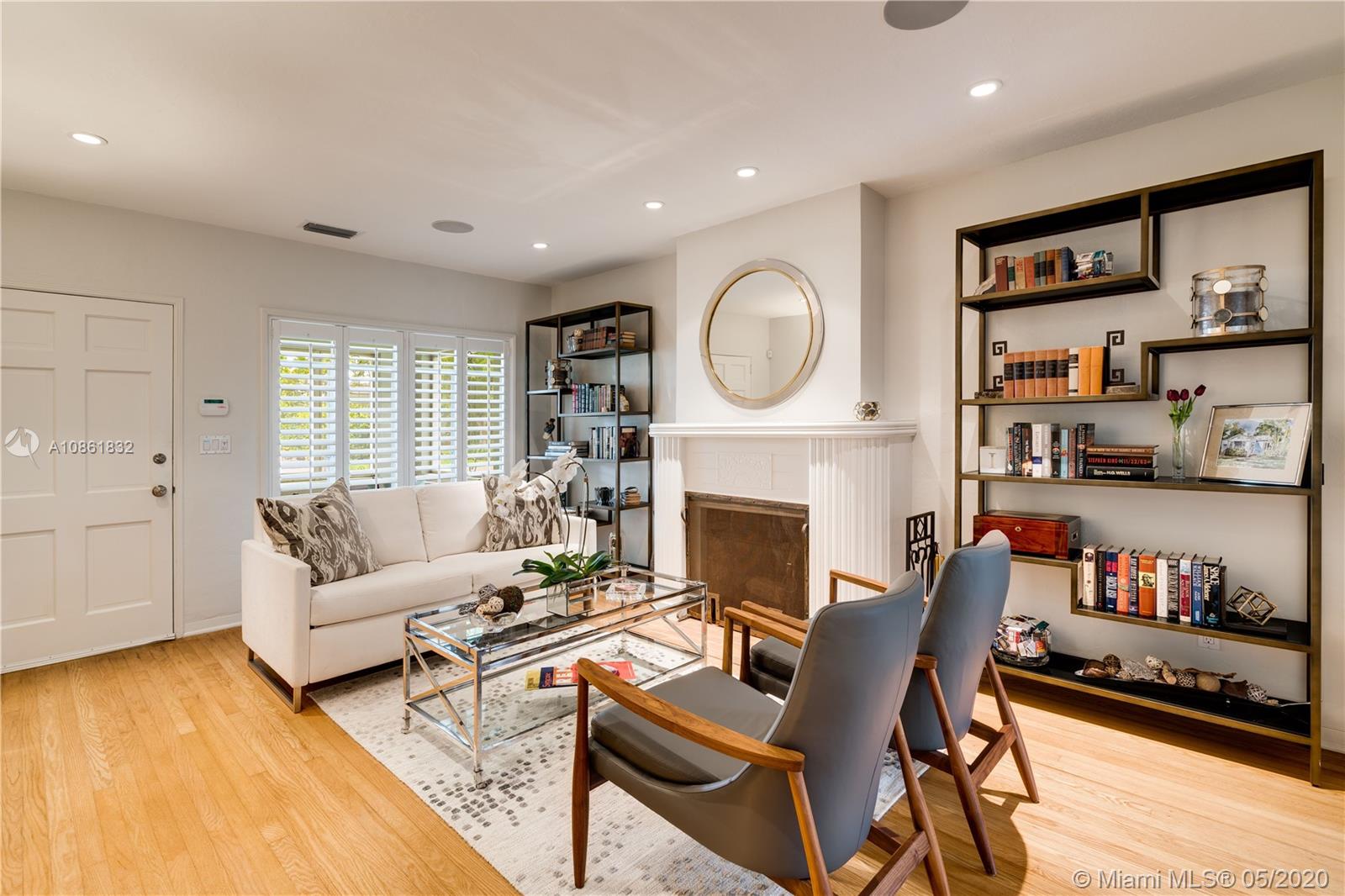 Landmark 1941 Deco-Modern bungalow by celebrated architect H. George Fink; expanded, restored, and updated to perfection in 2016. Ideal location next to delightful pocket park & short walk or trolley ride to downtown Gables or Merrick Park. Features gourmet kitchen, dining room, butler's pantry, wine cooler, wet bar, laundry room, new master suite, custom cabinetry, original wood-burning fireplace, new plumbing, new electric, new lighting and speakers, new AC, new tankless gas water heater, new sprinklers, new well & new septic tank, gorgeous hardwood floors, new impact windows & doors, plus garage. Ad valorem tax-exempt on a portion of real estate taxes through 2025. This completely turn-key 3/2 mid-century jewel offers charm galore with cutting-edge updates. 1910 Total Area, Lot 6250 sq'