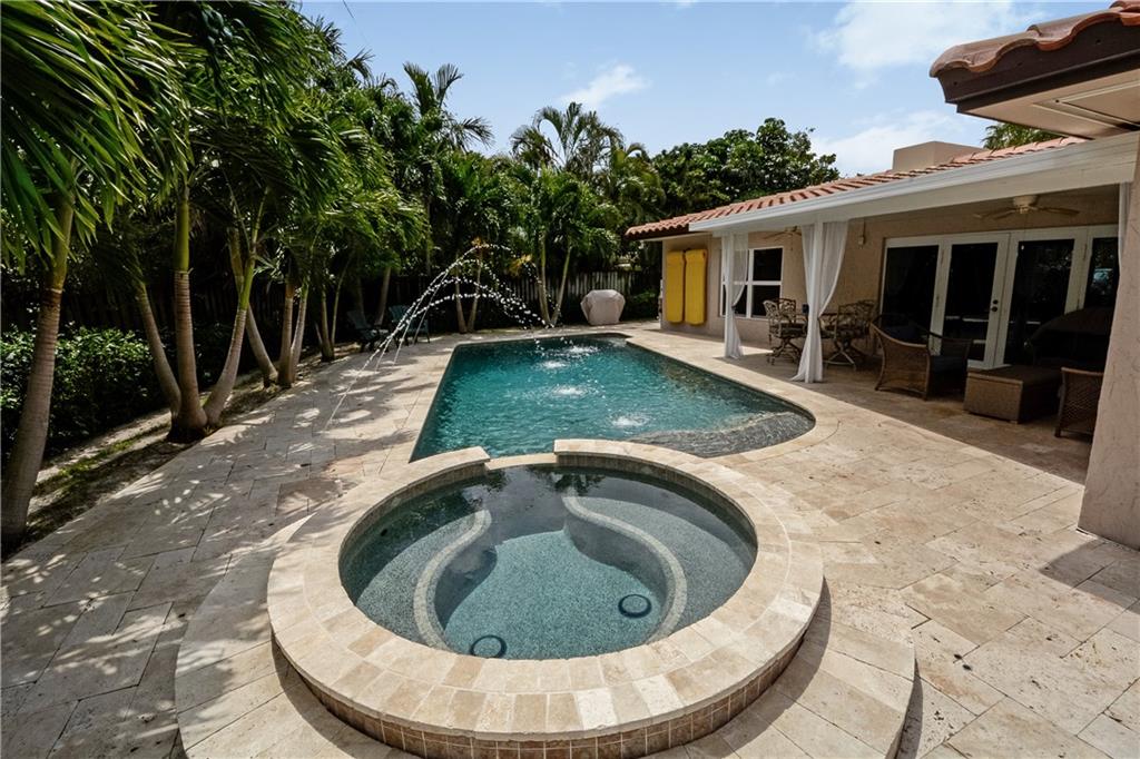 Ready to move in, completely remodeled. Marble floors, granite counters, impact windows, fireplace, split floor plan, open area for liv, din and kit. Heated 15x30 pool/hot tub, w/ blue Pebble Tech finish, shallow area & fountains. 2 separate covered outdoor sitting areas w/ fans, hot/cold outdoor shower, full 2 car garage, 2 sheds. Backyard fully fenced in, mango & avocado trees, large lot & circle driveway for easy access & room for 8 cars. Pleated shades, drapes. New roof, A/C & upgraded appliances.