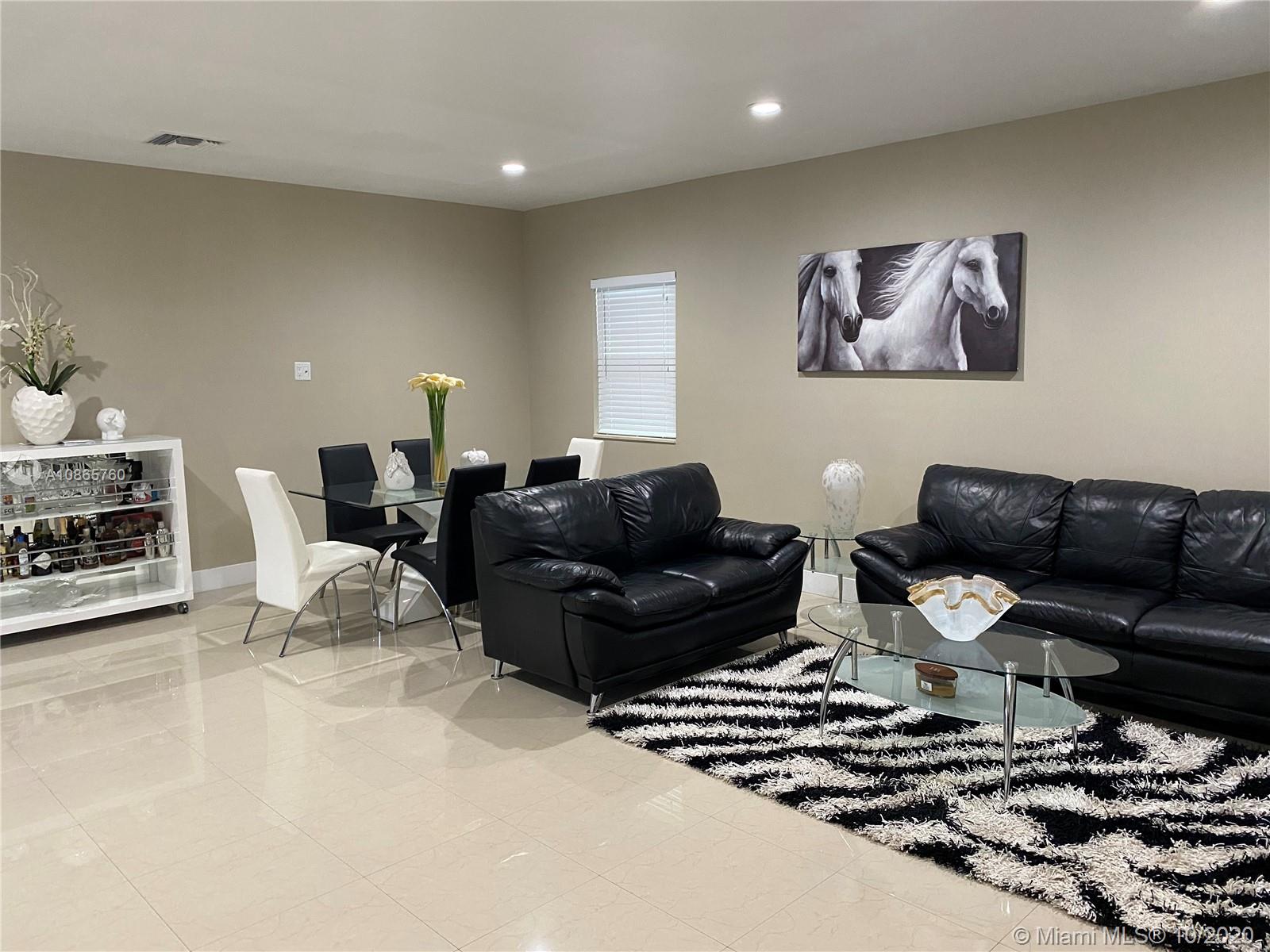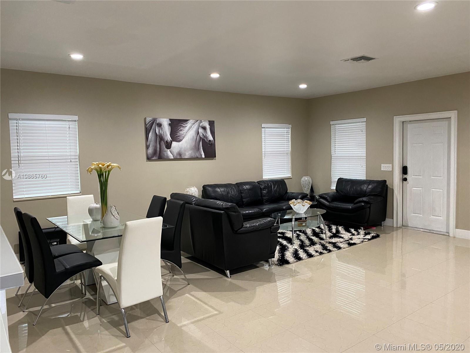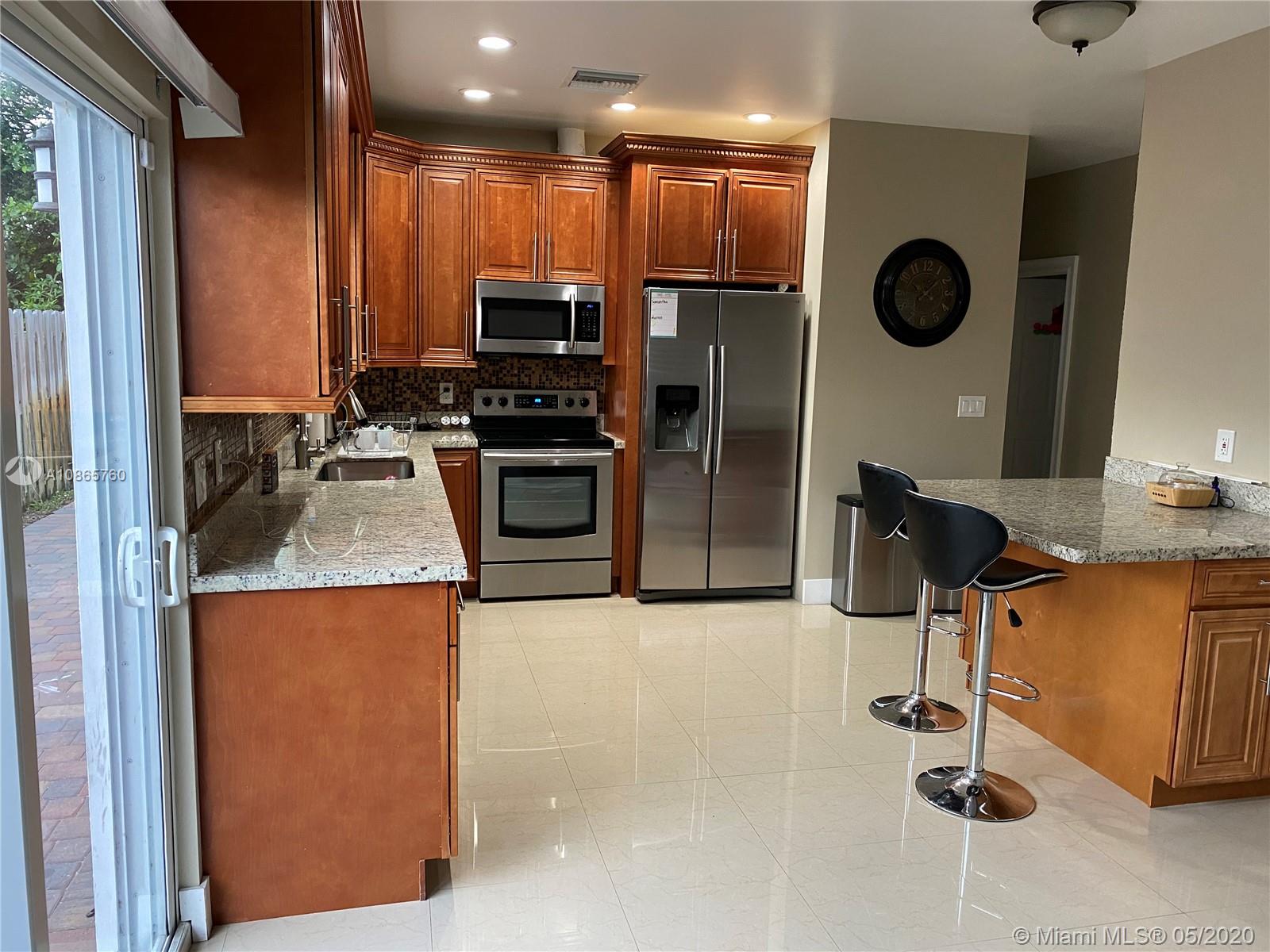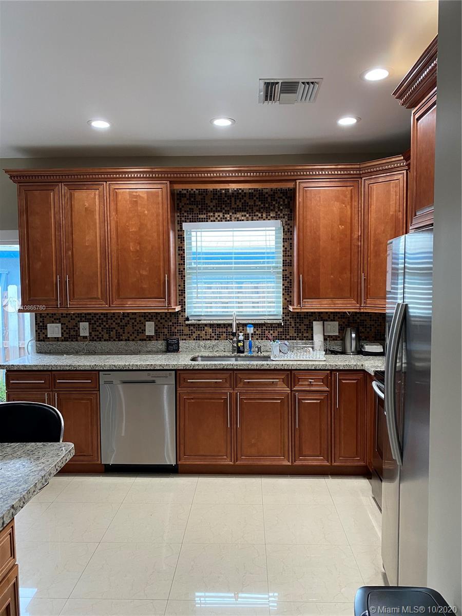 Gorgeous 3/2 +1 car garage single family home, features large open concept living area, porcelain floors and baths, kitchen with granite counter tops and stainless steel appliances, washer and dryer in laundry closet centrally located, high impact windows and doors, Master bedroom has sliding door opening to a pave patio and private fence-in backyard. dinning room /kitchen also with sliding glass door, close to mayor highways and points of interest.
