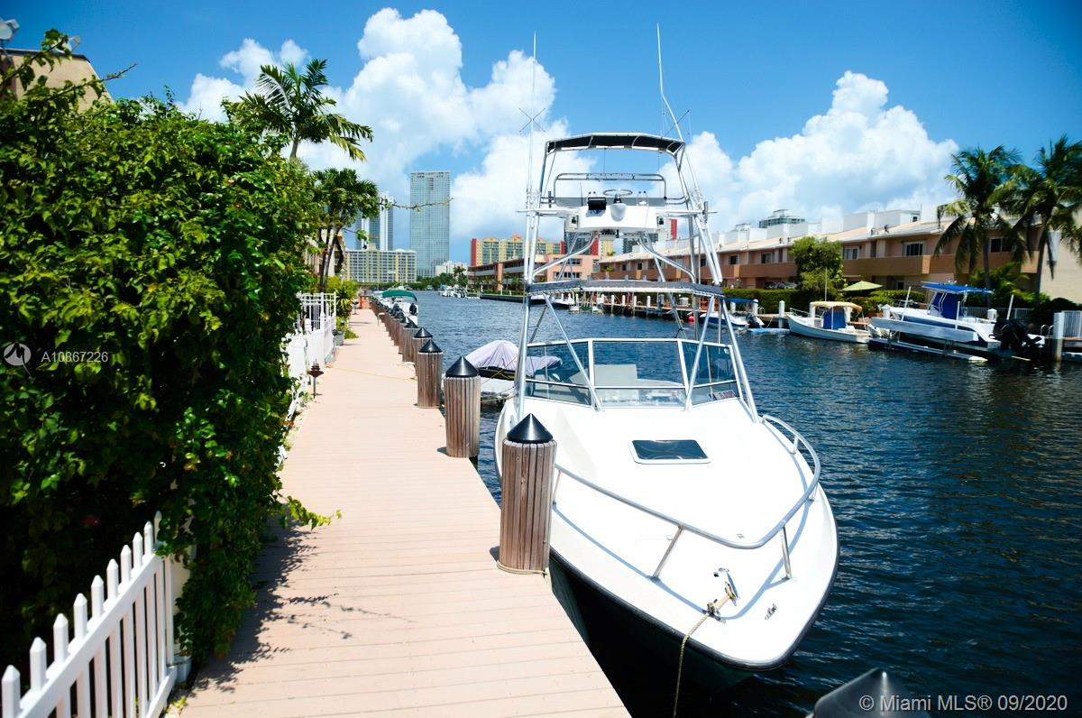 LOWEST PRICED unit on the water with direct ocean access and a 20 ft boat dock with no fixed bridges to ocean. Don't miss this chance to own a boat at home! Needs TLC, fixer upper. Gated community of Eastern Shores, this townhouse has 3 bedrooms + 2 and a half remodeled bathrooms! Huge bedroom overlooking the Intracoastal with a private balcony. Great patio area facing the water and community pool. Association allows immediate yearly rentals & also allows large (and multiple) pets for owners. Close to Aventura Mall, Oleta State Park, restaurants, shops etc.