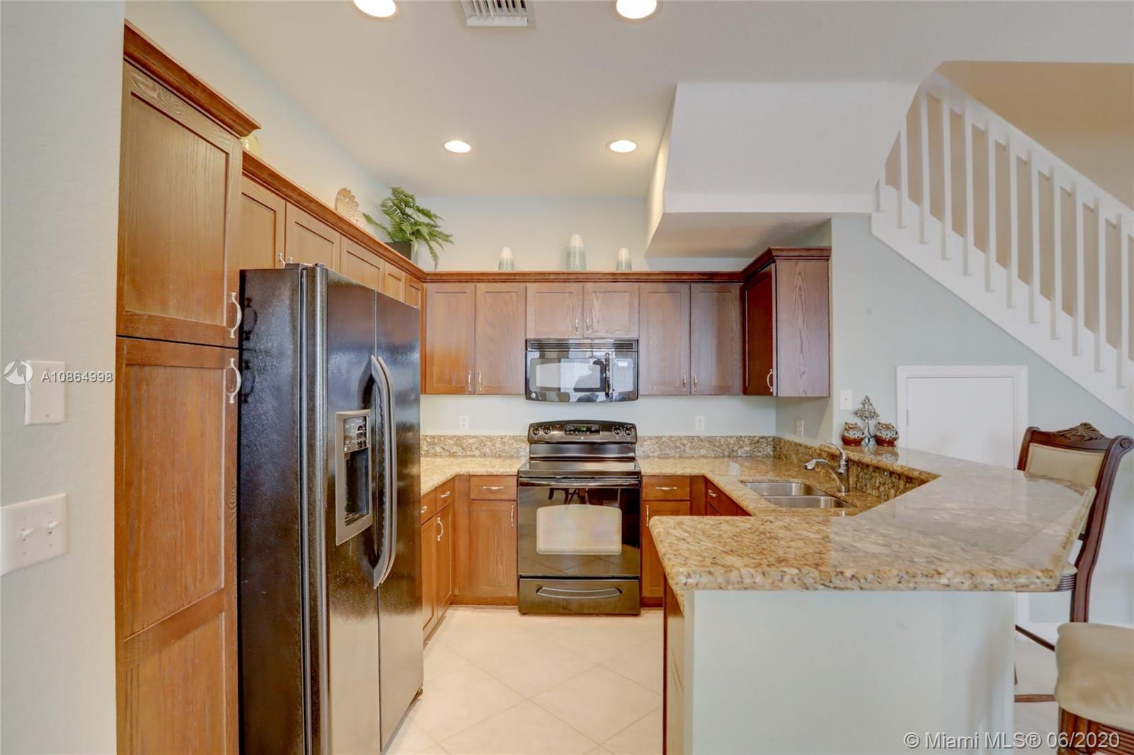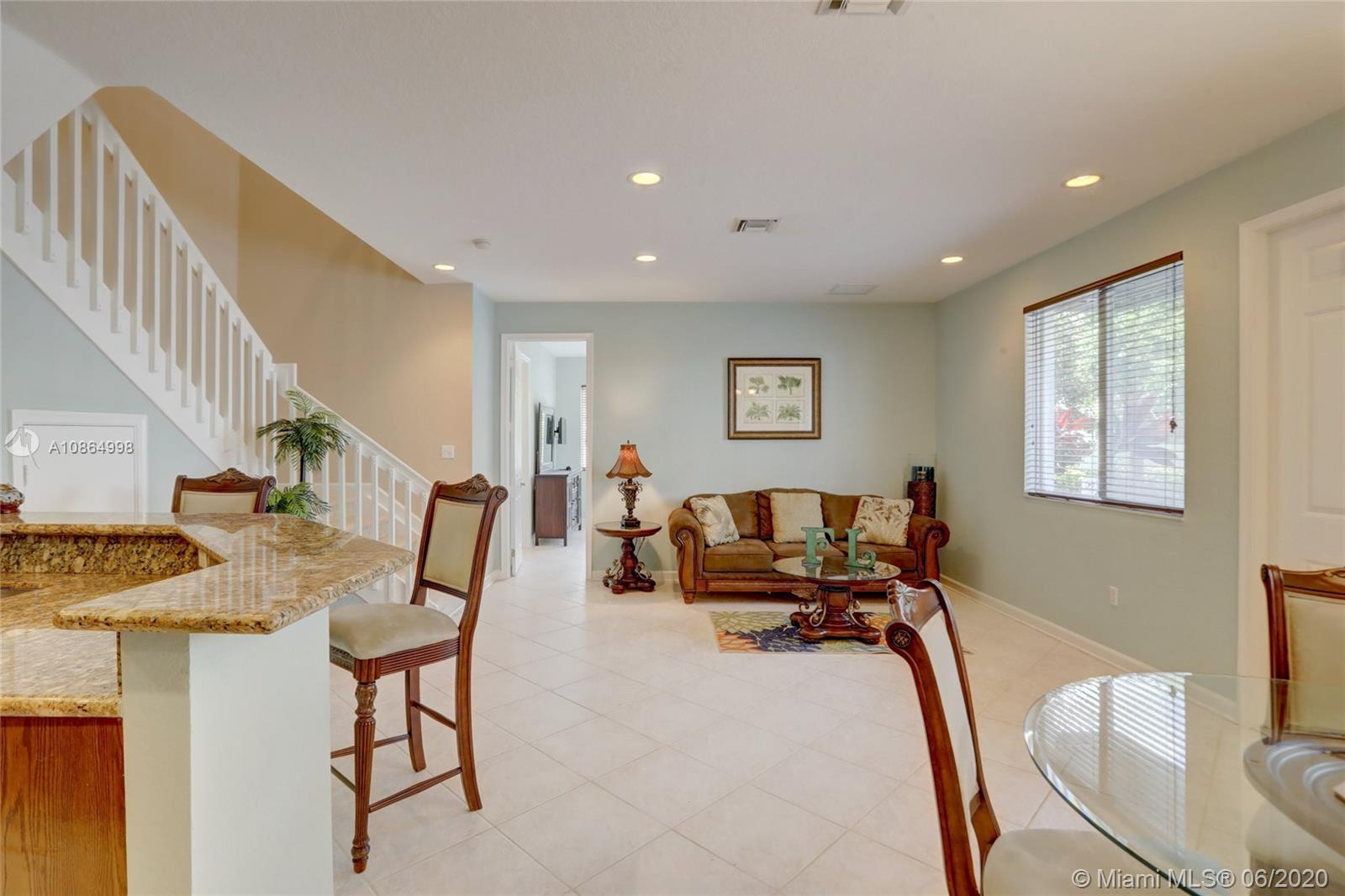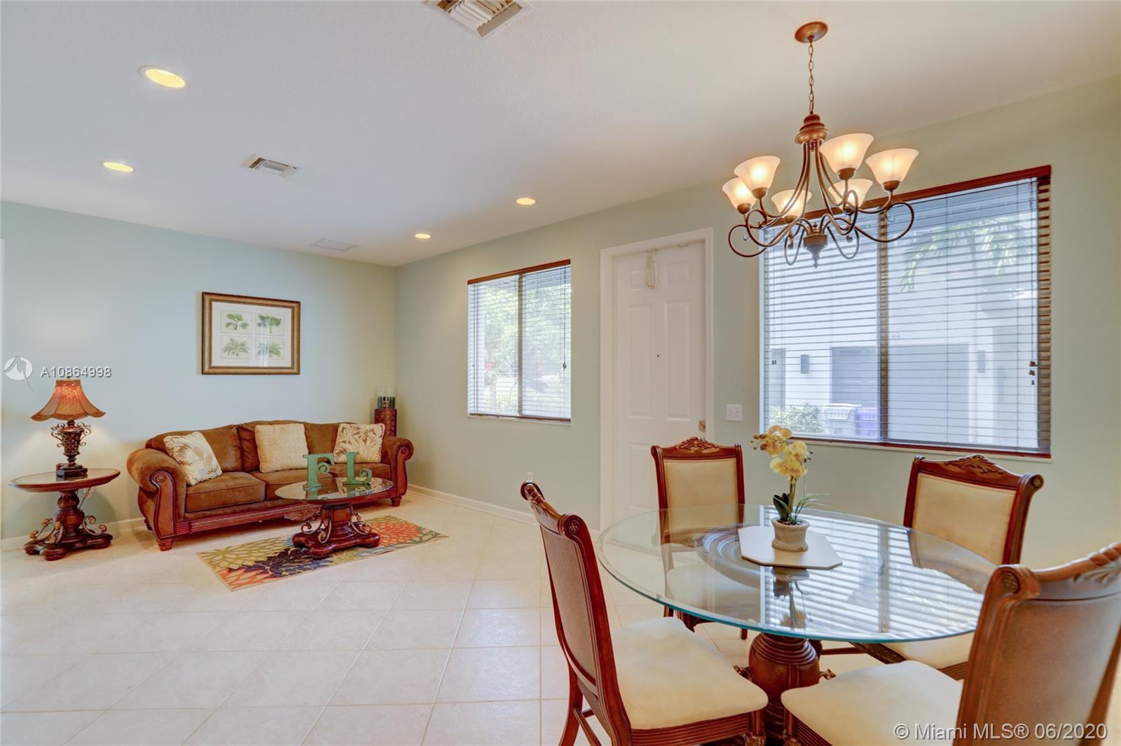 Wow, move-in ready 3/3.5 townhouse priced 70k below newer models in the community with similar finishes & low HOA fees. This two-story, northwest facing end unit includes a huge loft in a gated community in up & coming Pompano Beach. Recent upgrades include kitchen cabinet crown molding, new awnings & light fixtures & freshly painted inside & out. Open & inviting floor plan with 3 over-sized bedrooms including a downstairs master with Jacuzzi tub, & two second level en-suite bedrooms that could also be a master. Open kitchen overlooking the spacious family room & breakfast nook. Tile flooring on the first floor & carpet on the second. Huge loft upstairs can be used as an entertainment room, gym, or play area for the kids. Impact windows & doors, plus one car garage and carport.
