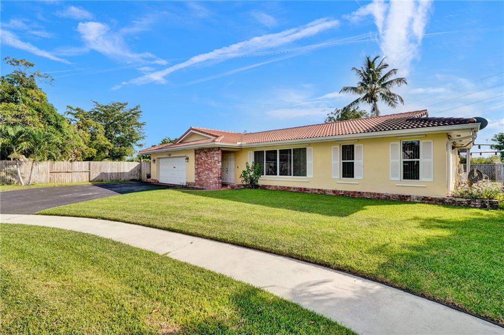 4 bedroom home with pool on a huge lot located in a cul-de-sac. Gorgeous renovated kitchen with hardwood cabinets, granite counters & newer stainless steel appliances. New bathrooms and impact sliding glass doors leading to the patio. Split floor-plan has the master bedroom ensuite with a cabana bathroom on one side of the home and three generous size bedrooms on the other side of the home. You'll find tile flooring in the living areas and Bamboo floors in all of the bedrooms. Huge interior laundry room with tons of storage. Screened patio with pool on a huge fenced pie-shaped lot that features an avocado & mango tree and a shed.. Roof (2003). Come make this home yours. Conveniently located near I-595, shopping, transportation and the airport. NO HOA.