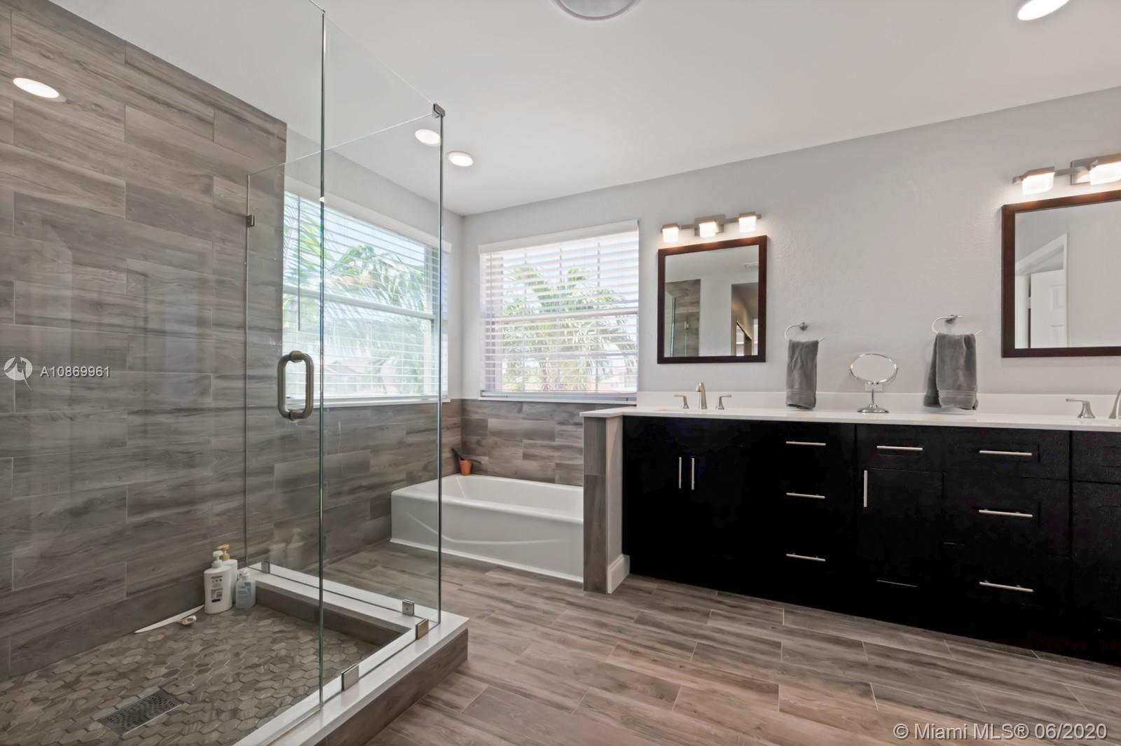 Gorgeous and spacious two story home in the neighborhood of Coconut Bay in West Miramar. The kitchen and both upstairs full baths have been recently remodeled to a very high standard. The ground level of the home features open space living with a formal dining and living space, eat-in kitchen, large family room, equipped laundry room, and guest half bath. All bedrooms are located on the second floor. Huge master bedroom with walk-in closets and spacious, beautifully redone spa-like master bath. The place is turn-key and ready for move-in. Property has a large fenced in backyard with a covered patio. Perfect for entertaining. "A" rated charter schools close by.