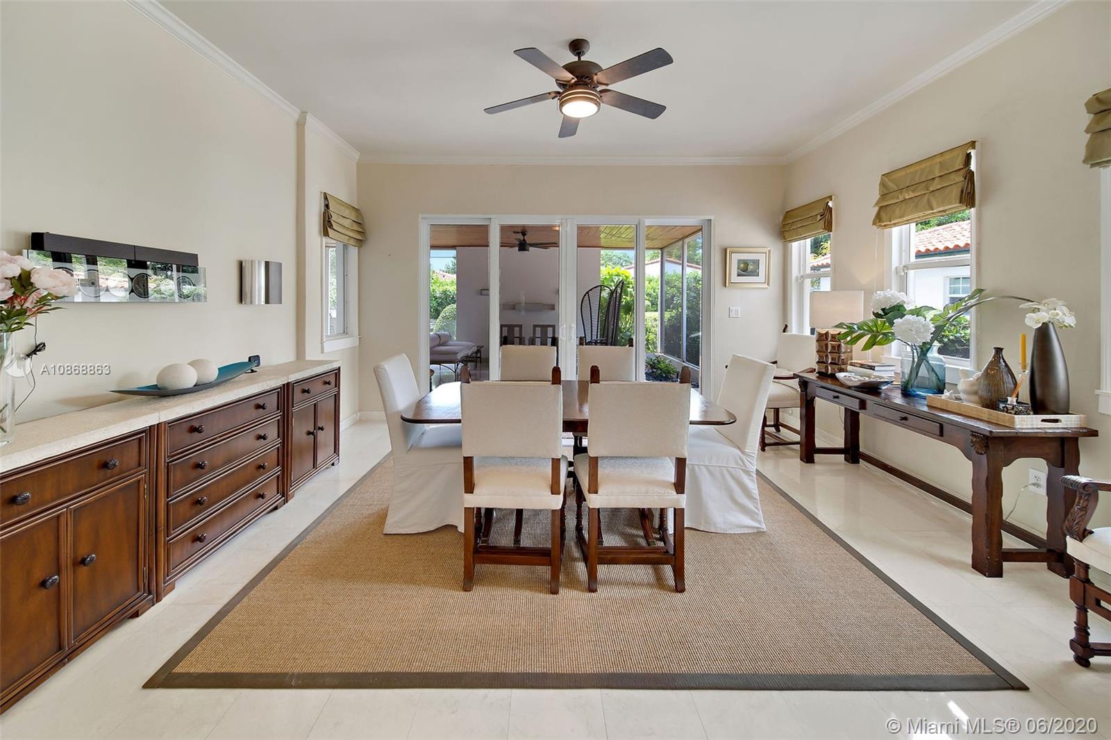 Miami Shores gem located in sought after Grand Concourse, an enchanting wide boulevard surrounded by glamorous properties. The 4 bedrooms, 3.5 baths home sits on 14,972 sqft lot, w/perfectly tended gardens offering multiple trails & sitting areas to relax & enjoy the outdoors. The living space includes a sumptuous great room w/fireplace, formal dining w/access to the extra size covered patio, a light filled spacious kitchen w/cooking island & European style cabinetry. The master suite features sitting area w/beautiful views of patio & gardens, updated bathroom & walk-in closet. Two more en-suite guest rooms are very large & private. A detached 2car garage has been converted, perfect as an independent office, gym or hobby-room. Entry to the property driveway is through a quiet back road.