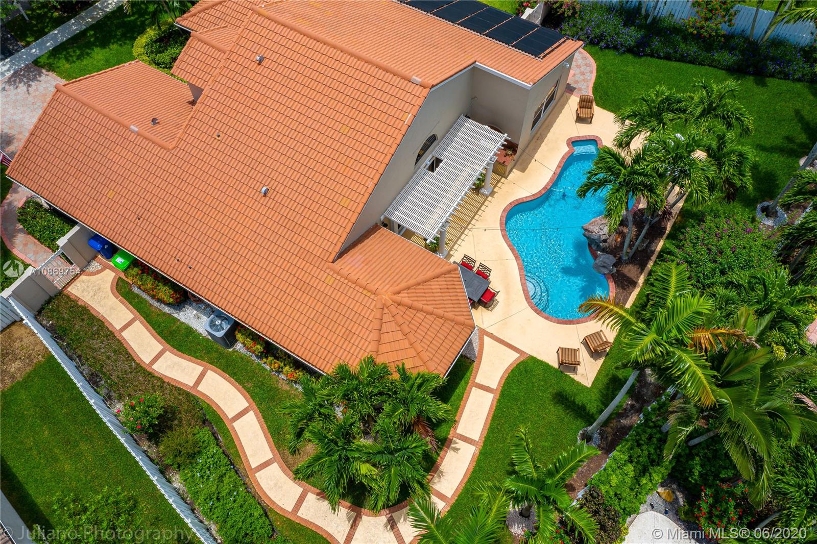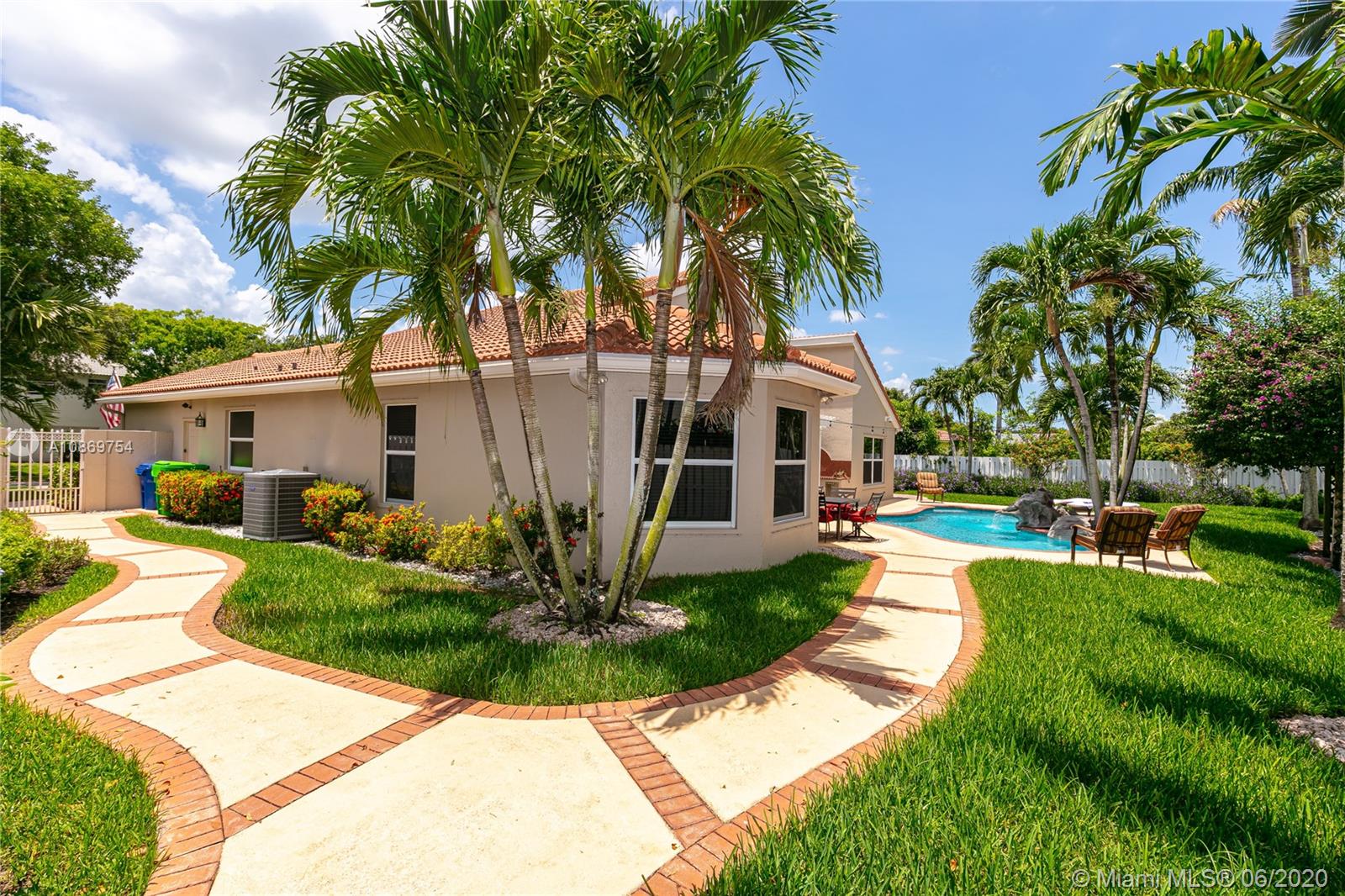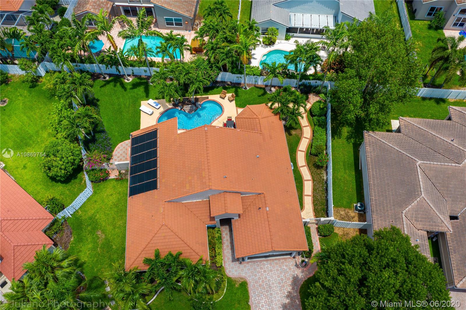 UPDATED SMART HOME! Alarm, Garage, Locks, AC, Sprinklers,Lights,Fans & 9 cameras all controlled by Smartphone. Open, split floorplan. Master has custom his & her closets. Other 3 rooms (1 w/built-in desk & Murphy bed) located on opposite side of home. Spacious family room/kitchen w/granite counters, soft close cabinets & stainless steel appliances. Wide open liv/din area flows out to pool. Beautiful solar-heated pool w/waterfall & built-in gas grill to entertain all year. Exceptional home finished w/diagonal 18” tile in living area & wood in bedrooms. New A/C, water heater, garage refrigerator w/icemaker, pool recently resurfaced, washer/dryer & Auto Transfer switch w/an external power connector for generator. Park next door offers splashpad,play lot,& more. Perfection awaits your buyers.