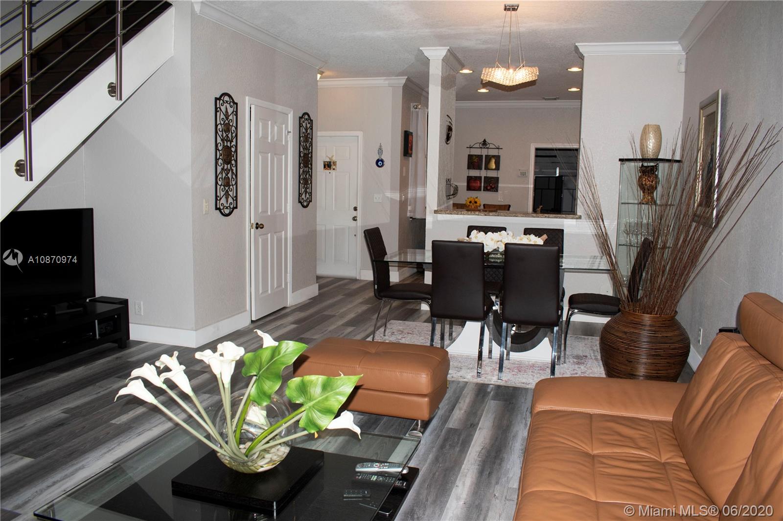 Beautiful and spacious townhouse with 2 master suites and guest bathroom. Completely remodeled unit with high quality features. Walk to school and enjoy living in Weston in a cozy but modern home. Home features new flooring anti scratch and water resistant in the whole house. Stainless steel stair handrails. Upgraded bathrooms with new vanities, tile flooring, glass shower doors and shower head. Garage can be used as office-den or can be easily converted back as garage. An insulated garage door keeps the garage fresh. Low maintenance fees that upkeeps the community in perfect condition, with swimming pool, brand new children’s playground, guest parkings and friendly neighbors. Accordion hurricane shutters.