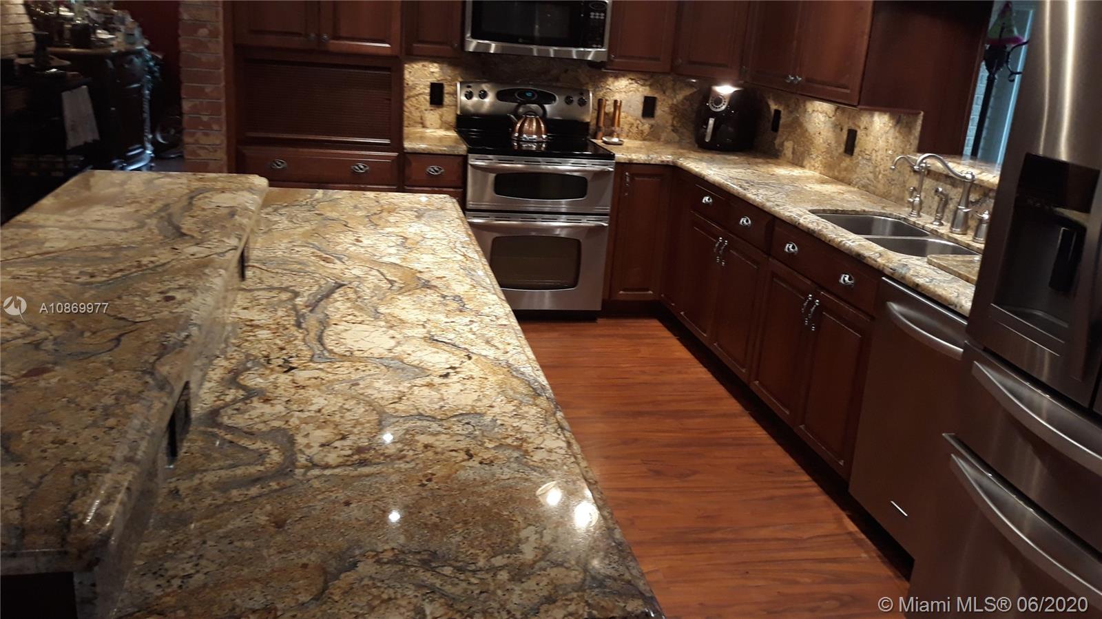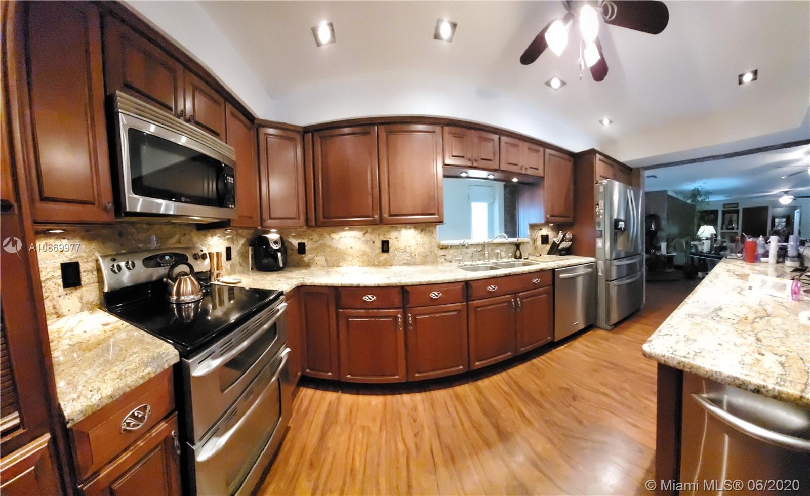 Beautiful and spacious 5 bedroom, 3 bath single story home on a cul de sac in the great family orientated neighborhood of Plantation Park. Remodeled kitchen with fine cabinetry and granite counter tops and built in wine racks. Kitchen has granite top Island that can be used for food preparation or as a great entertainment area. Remodeled bathrooms with granite counter tops. Crown molding, all floors tile and wood laminate. 13 ceiling fans (7 indoors, 6 outdoors). Storm windows and doors though out (except for 2 cabana doors) Large patio with a screened in swimming pool, pool table, water and electrical hook ups for outdoor cooking. Great home for entertaining.