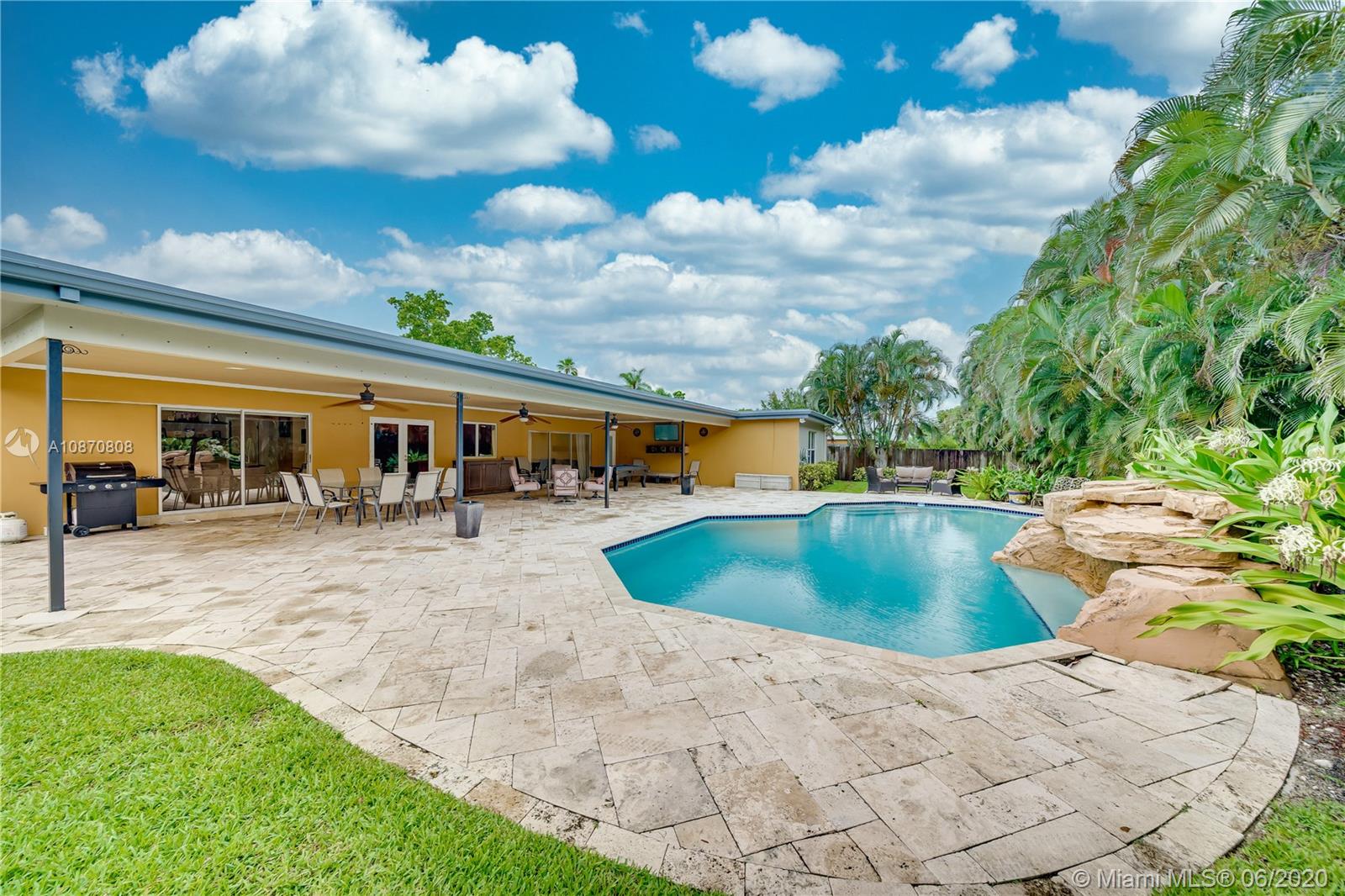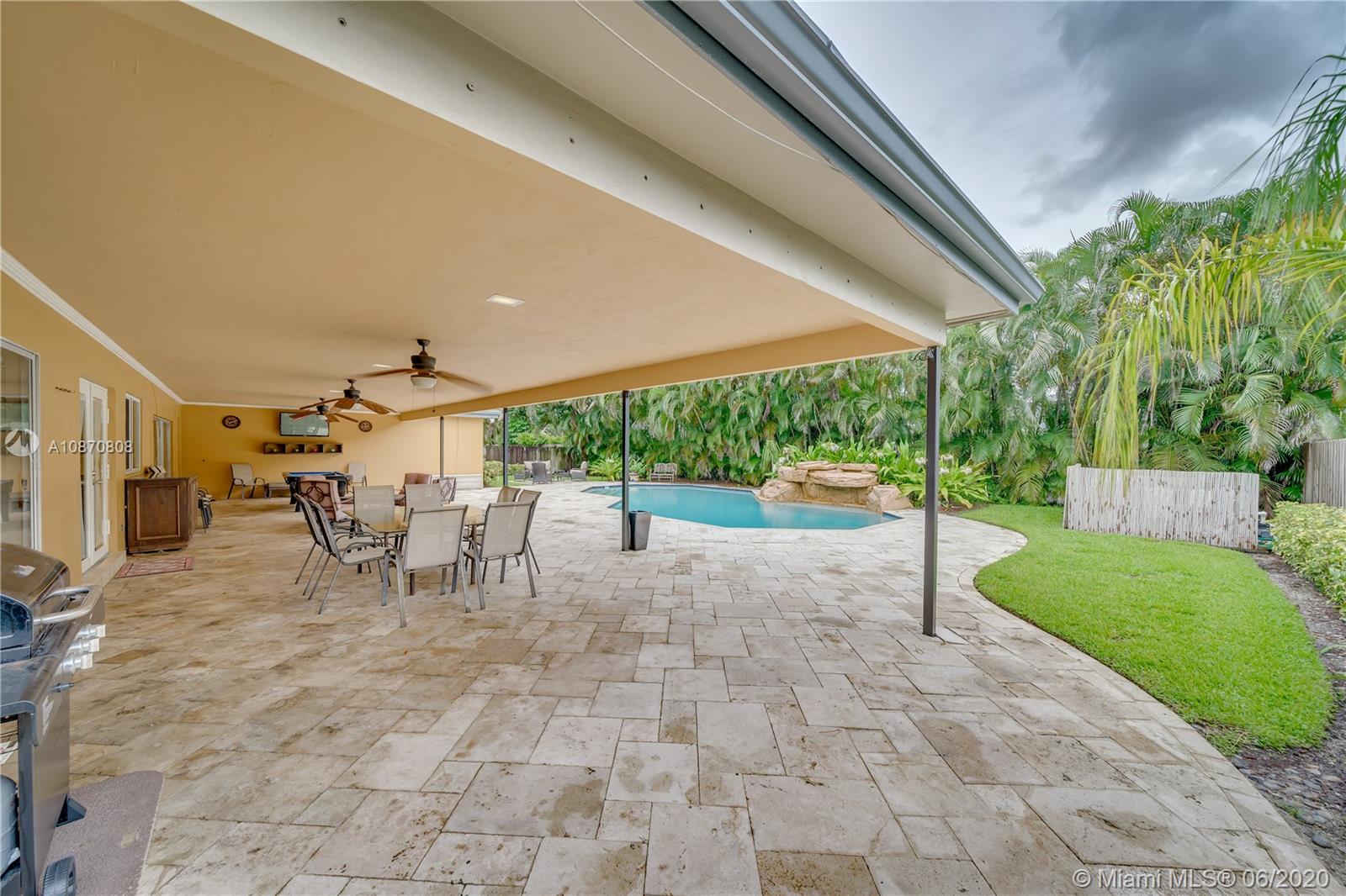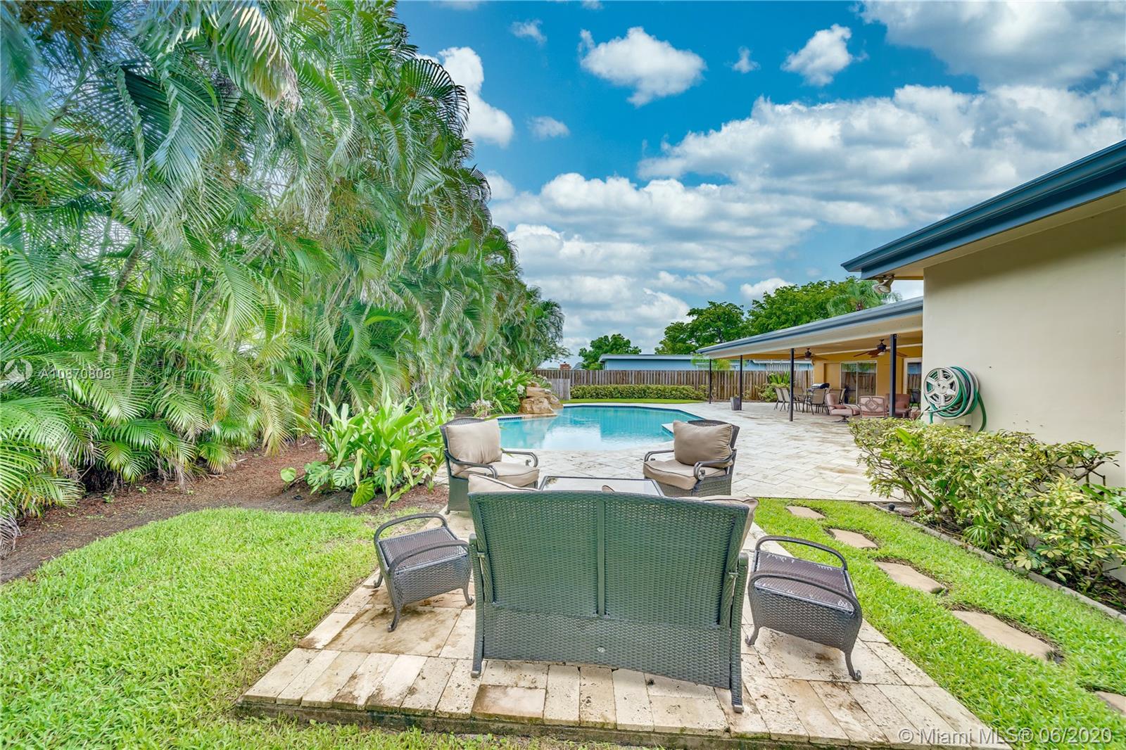 Your personal paradise awaits in the beautifully tree lined community of Royal Palm South in Plantation w/ NO HOA! 4 bedrooms & 3 bathrooms in this exquisite estate home w/ over 2,700 square feet! As you walk through the double front doors, you are greeted by the over-sized living room & dining room w/ your eyes immediately being drawn to the backyard oasis that is perfect for entertaining! Massive covered lanai, travertine pavers & one of the largest pools in the neighborhood w/ a waterfall feature! Tastefully updated kitchen w/ open concept to the family room. Neutral tile throughout living areas, laminate in bedrooms & hardwood in master bedroom. All bathrooms have been updated! Home meets all hurricane standards for insurance w/ hurricane impact windows & doors for most of the home!